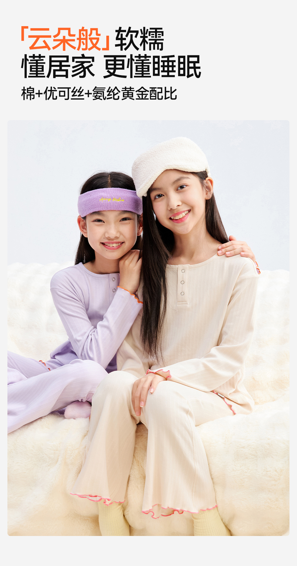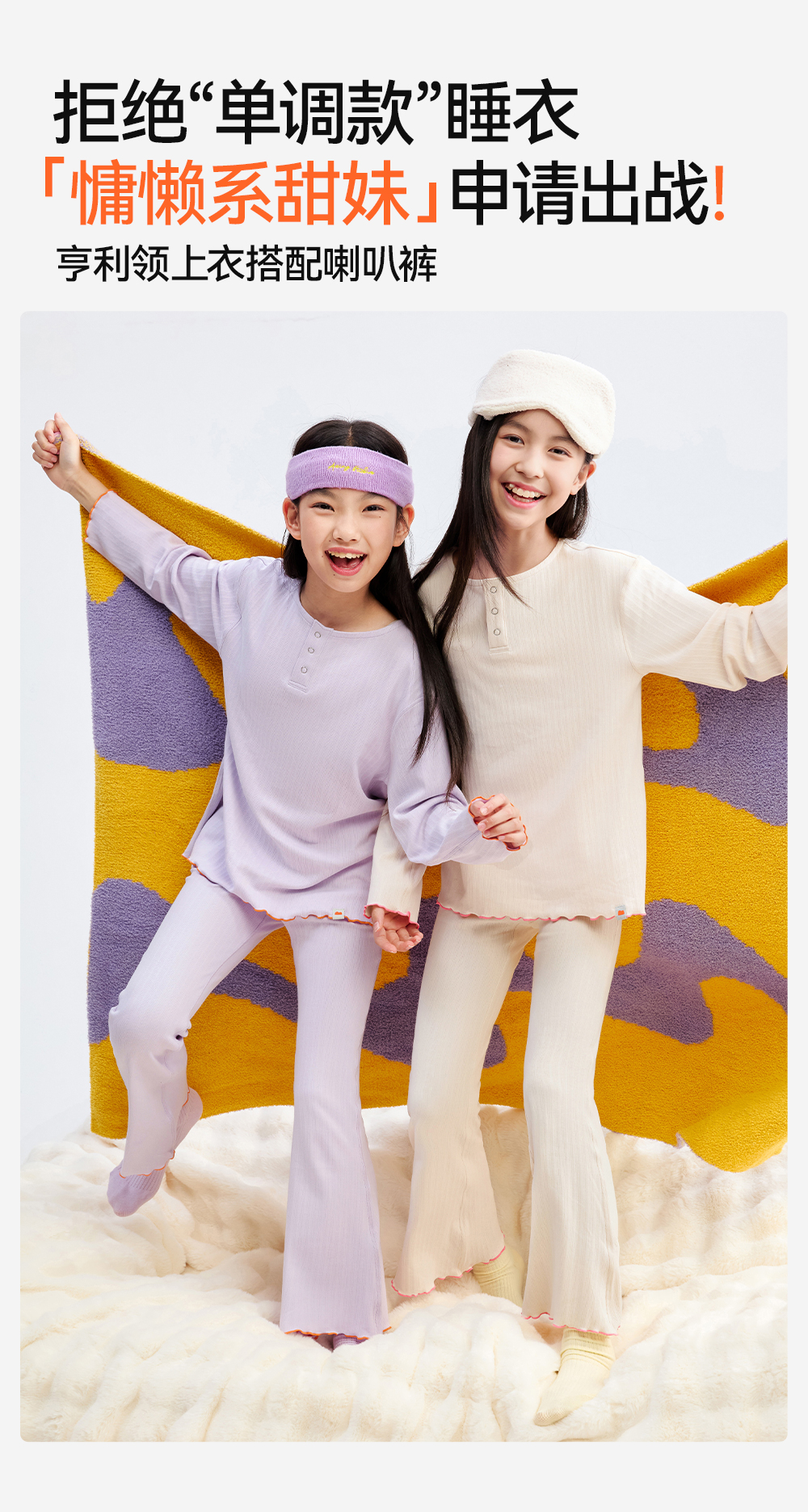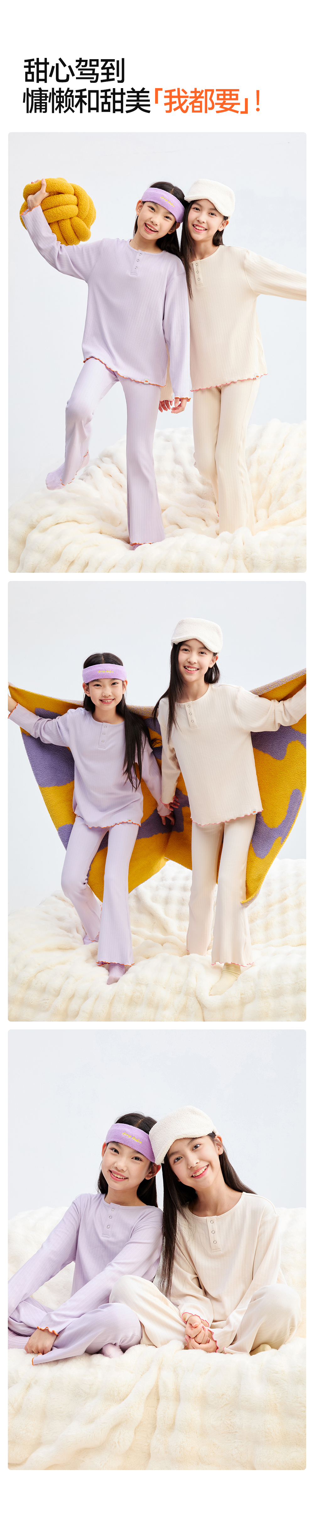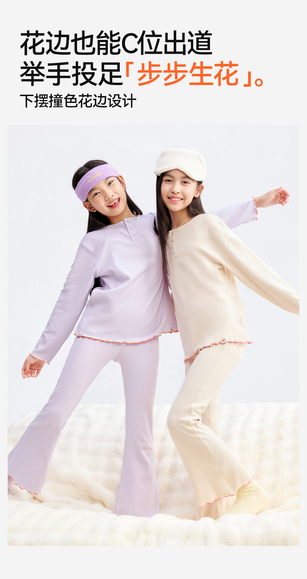 【女童内衣套装】森林棠25秋款 儿童女优可丝亲肤柔软吸汗透气花边喇叭裤内衣家居服套装60232501