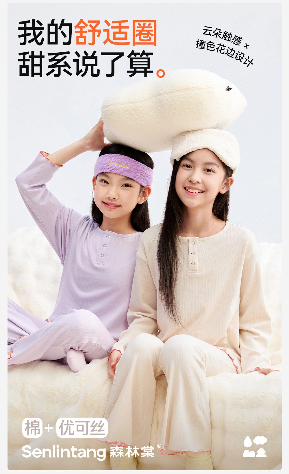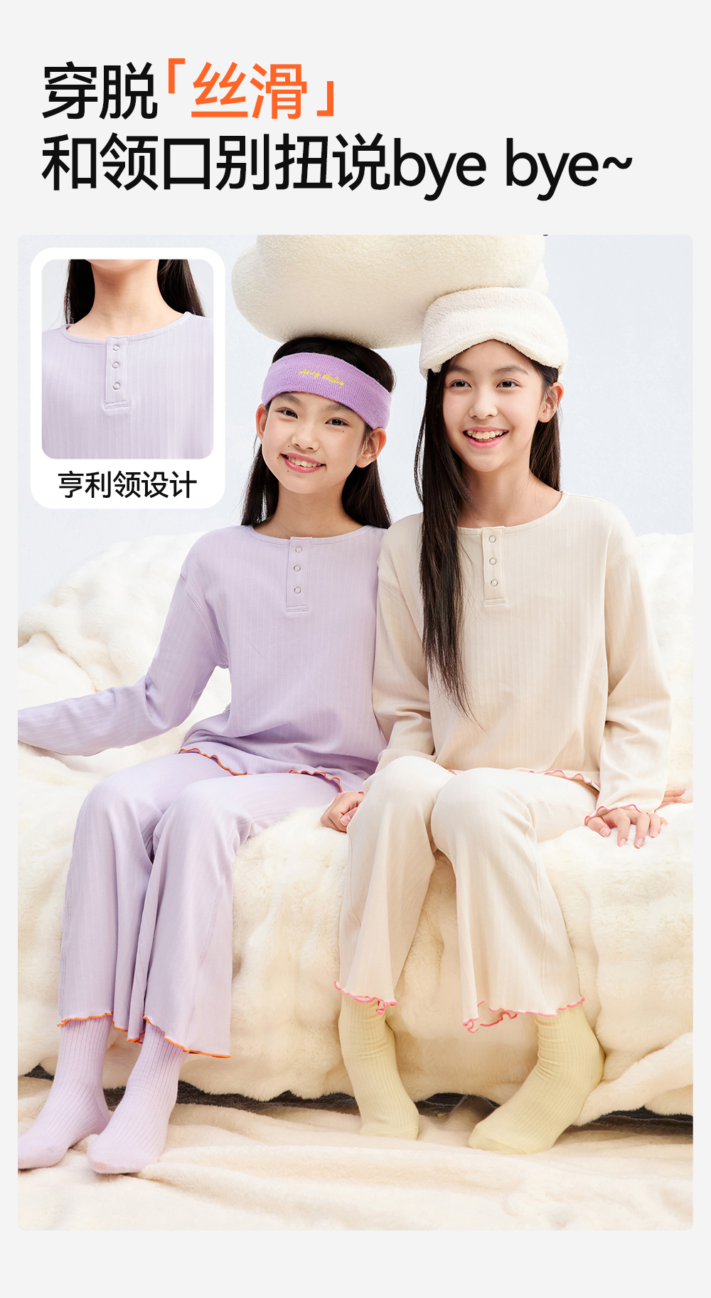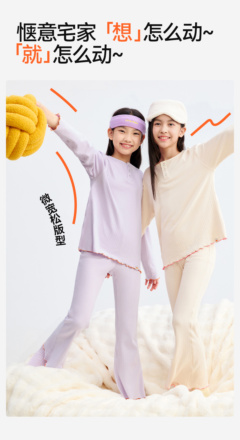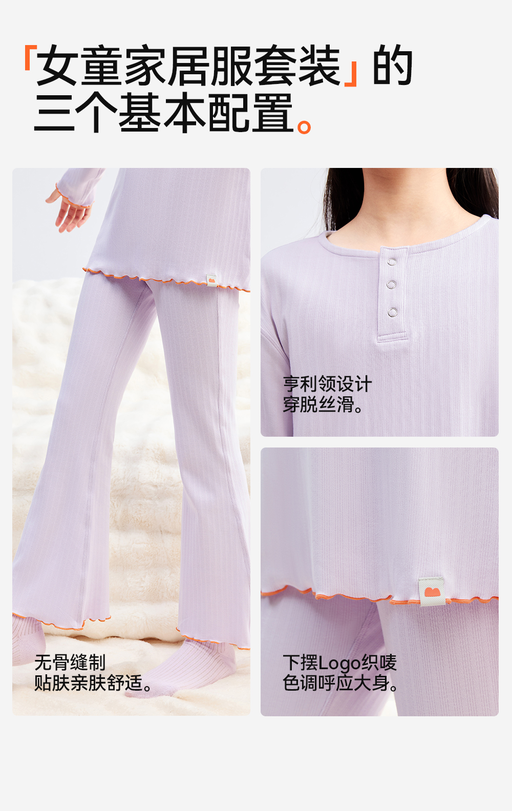 【女童内衣套装】森林棠25秋款 儿童女优可丝亲肤柔软吸汗透气花边喇叭裤内衣家居服套装60232501