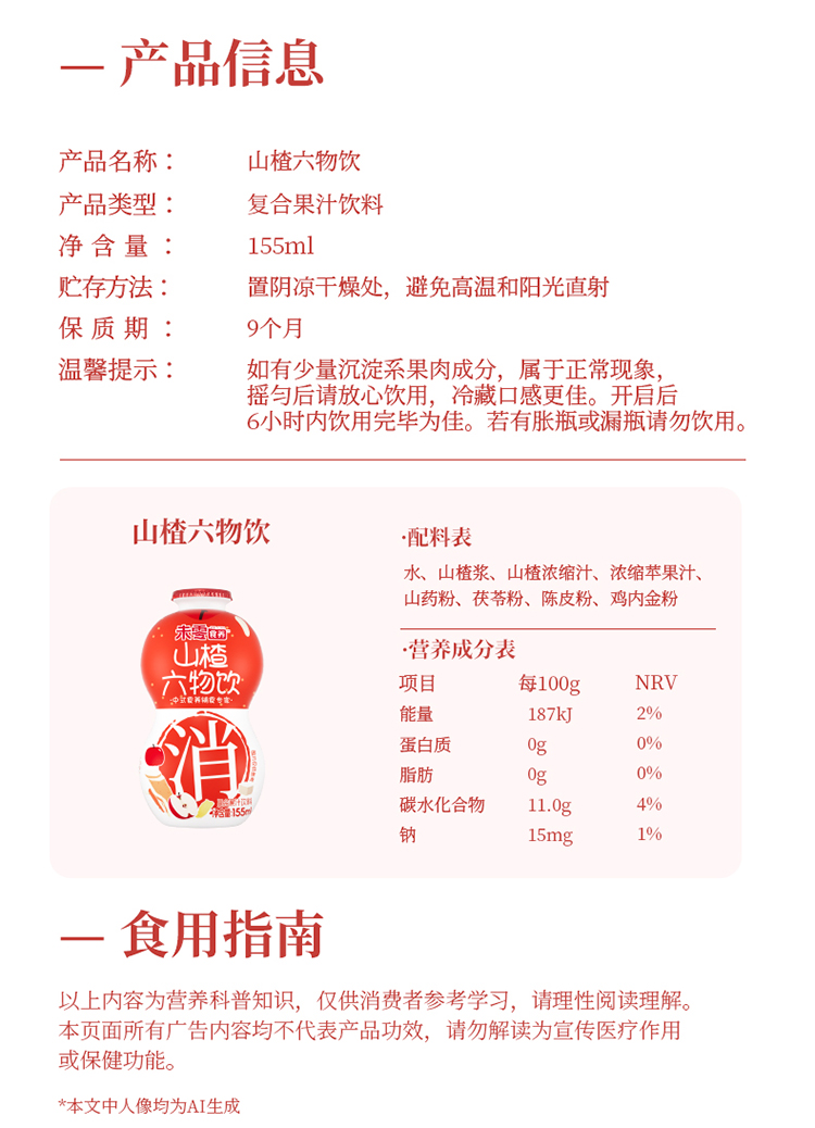 【双12】未零食养山楂六物饮宝宝零食健康饮料营养饮品24瓶礼盒装