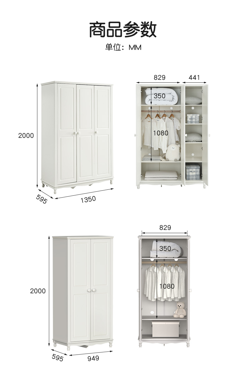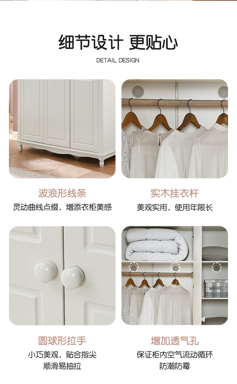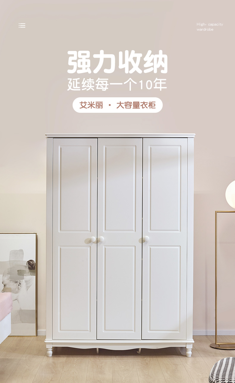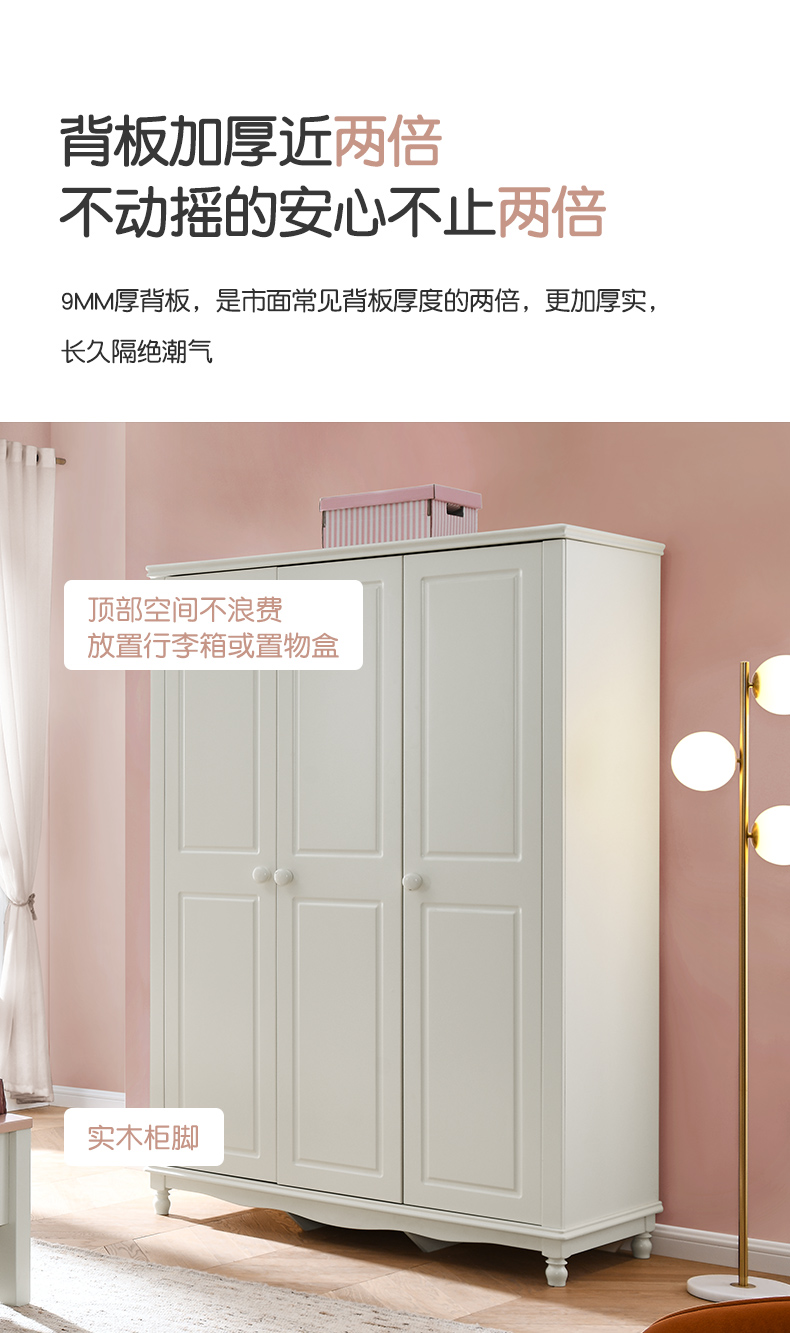 喜梦宝家具三门衣柜收纳柜北欧松木组装衣橱小户型家用卧室茉莉
