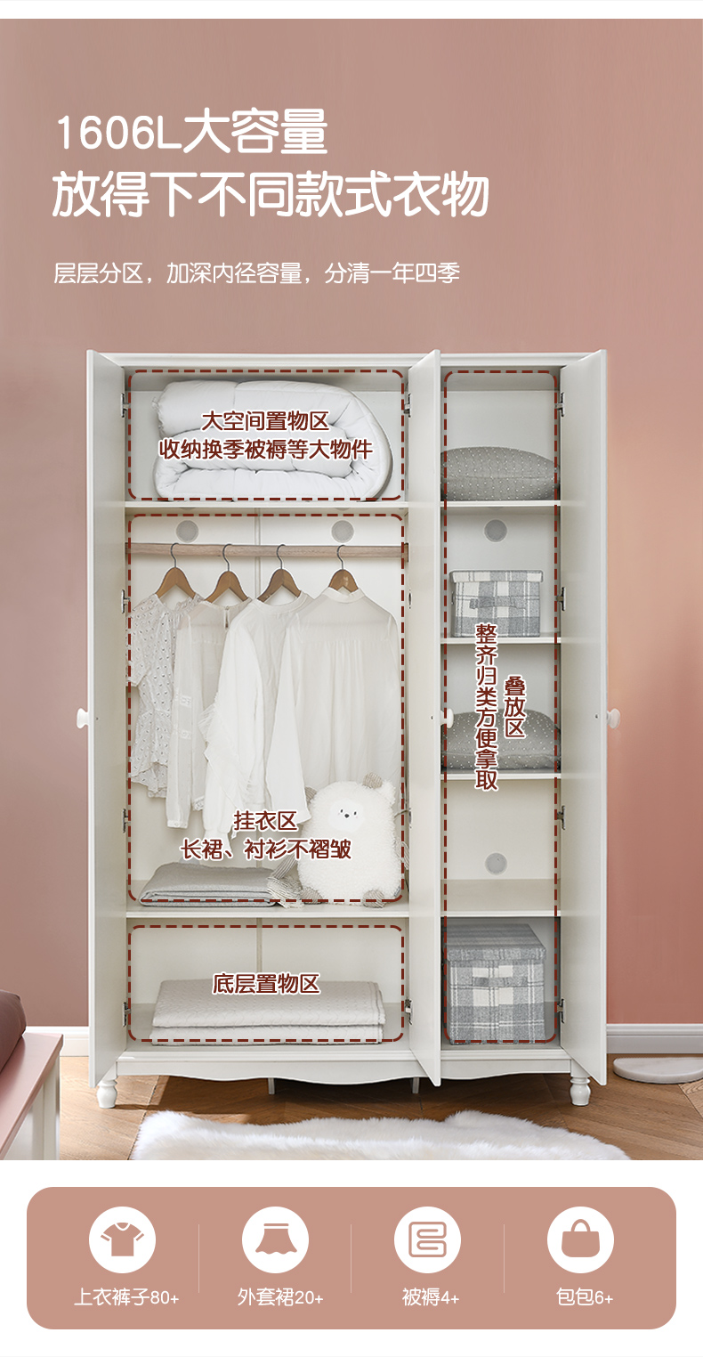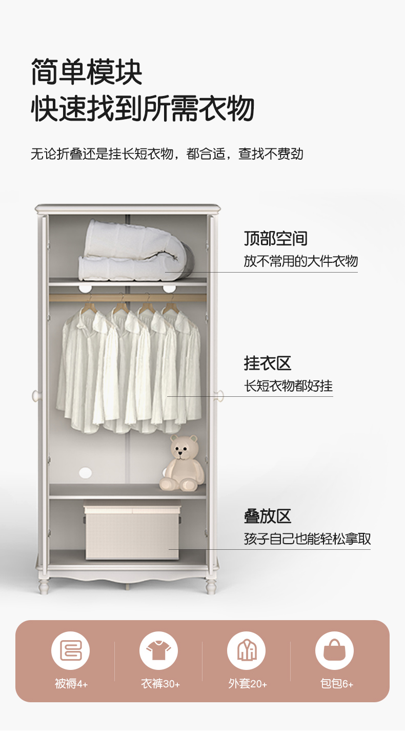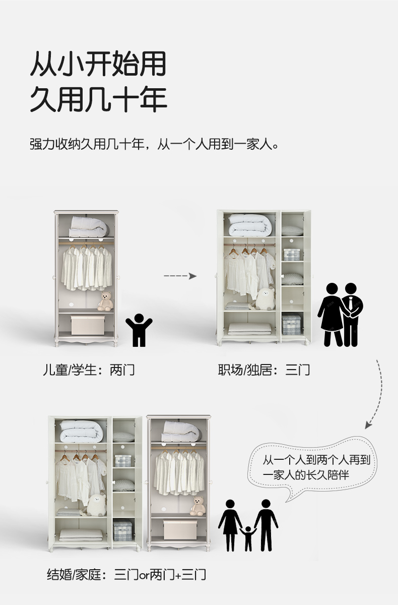 喜梦宝家具三门衣柜收纳柜北欧松木组装衣橱小户型家用卧室茉莉