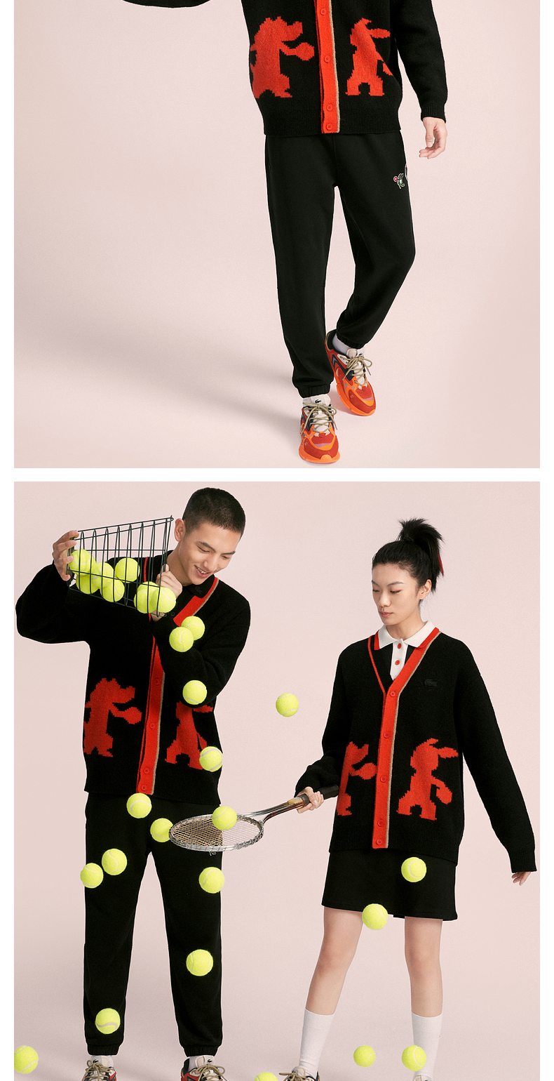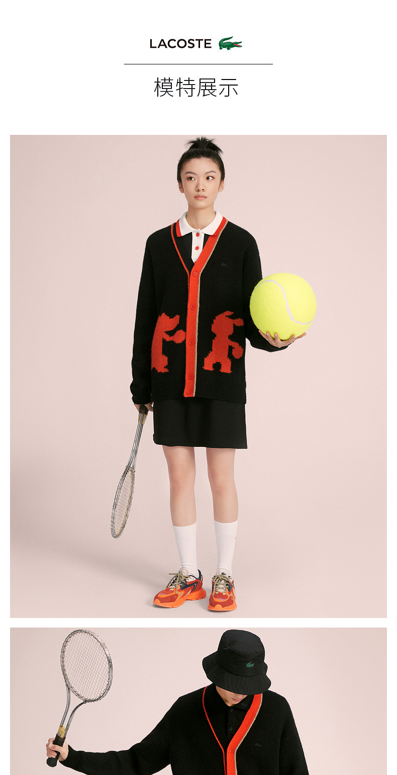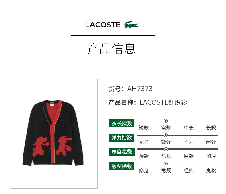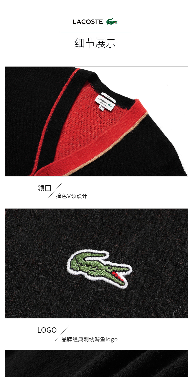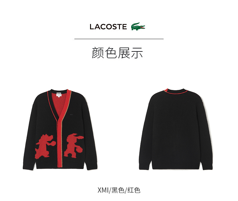 【海南专供价】Lacoste法国鳄鱼情侣款新款时尚黑红拼色针织开衫AH7373-98
