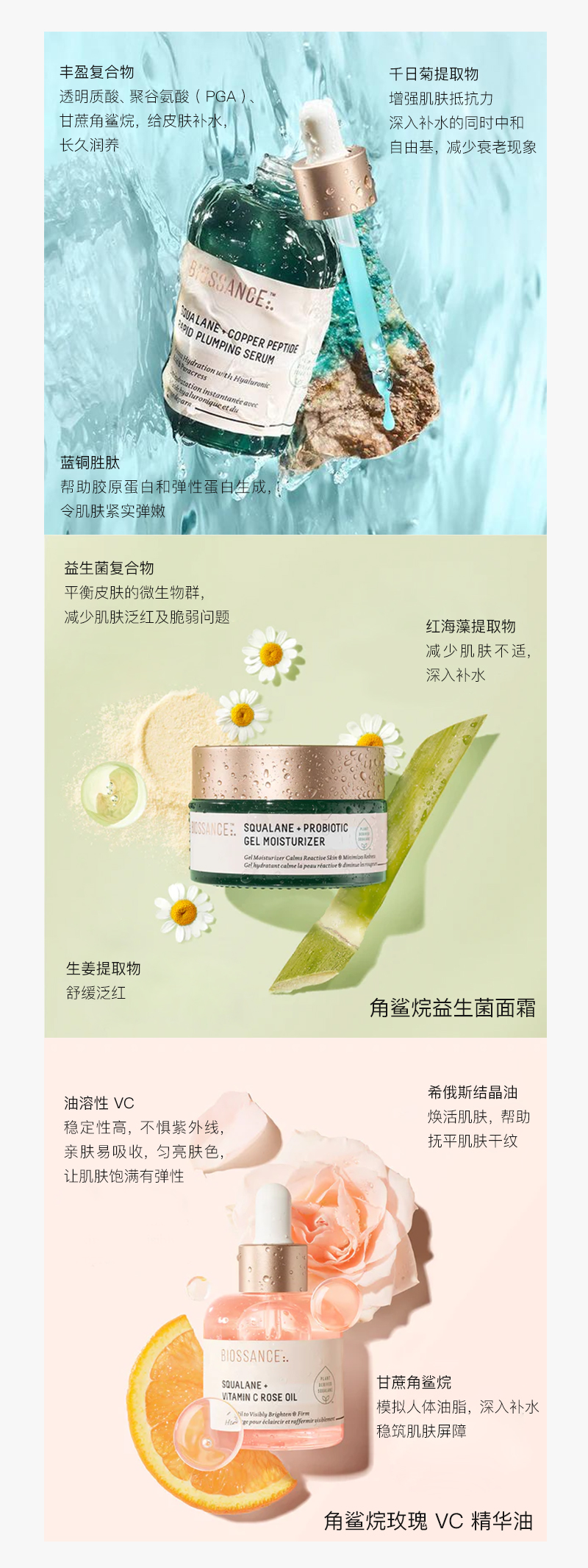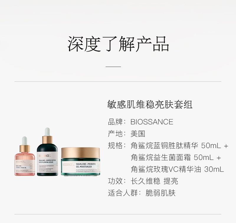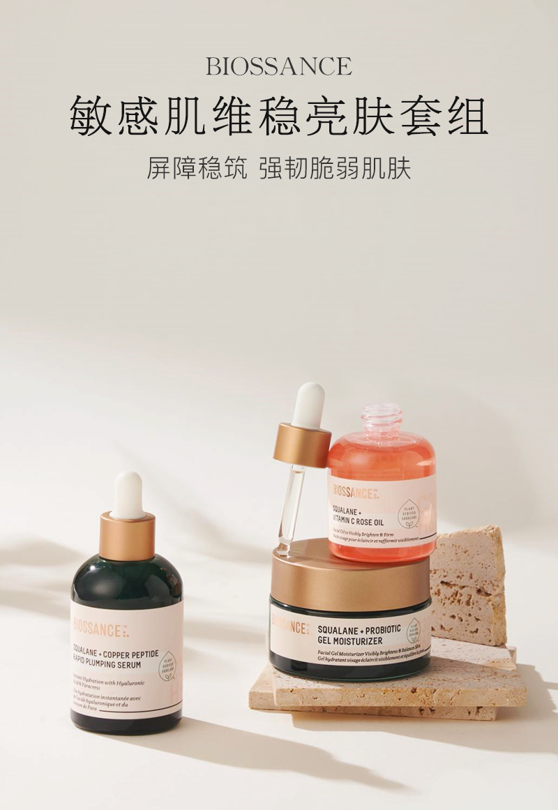 保税直发 BIOSSANCE 提亮修护抗初老套组(VC玫瑰精华油 30mL+蓝铜胜肽精华 50mL)