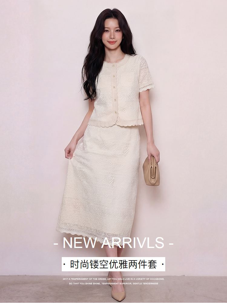 奢姿大码女装2026夏季减龄花边镂空两件套胖妹妹优雅气质时尚套装9962960126