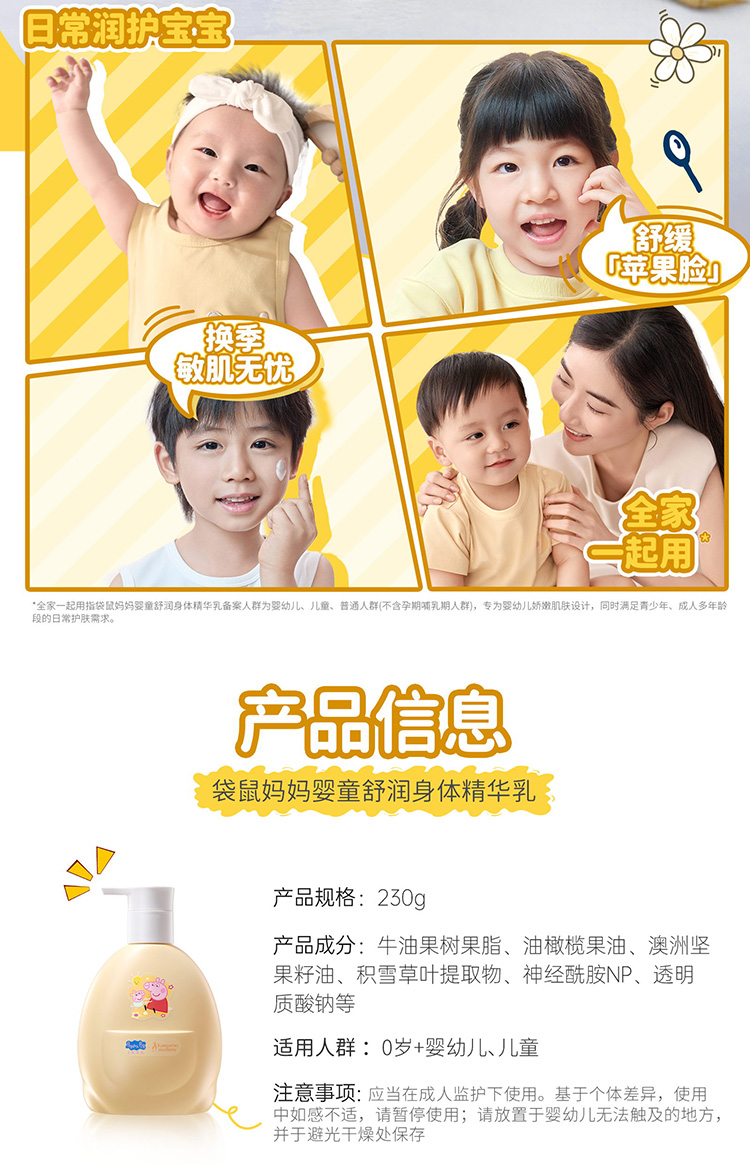 【小猪佩奇联名款】夏季保湿滋润 清爽不粘腻 呵护幼肌屏障 婴童舒润身体精华乳230g