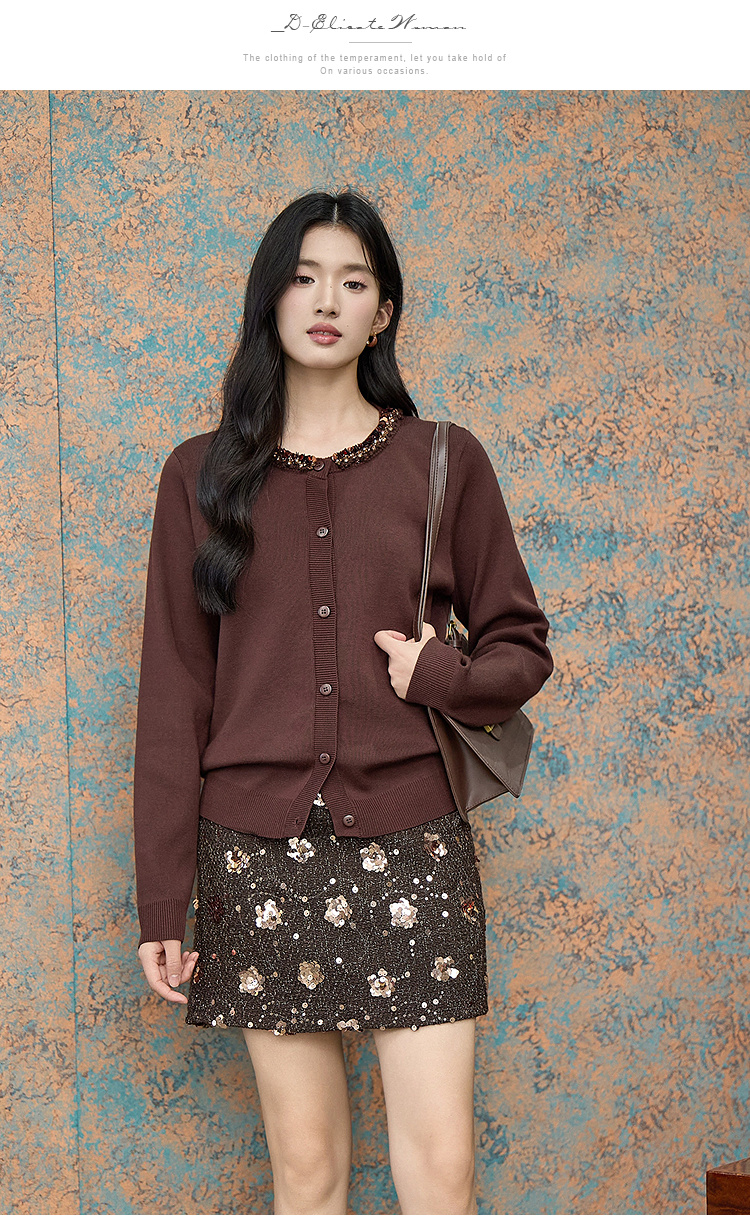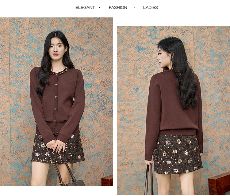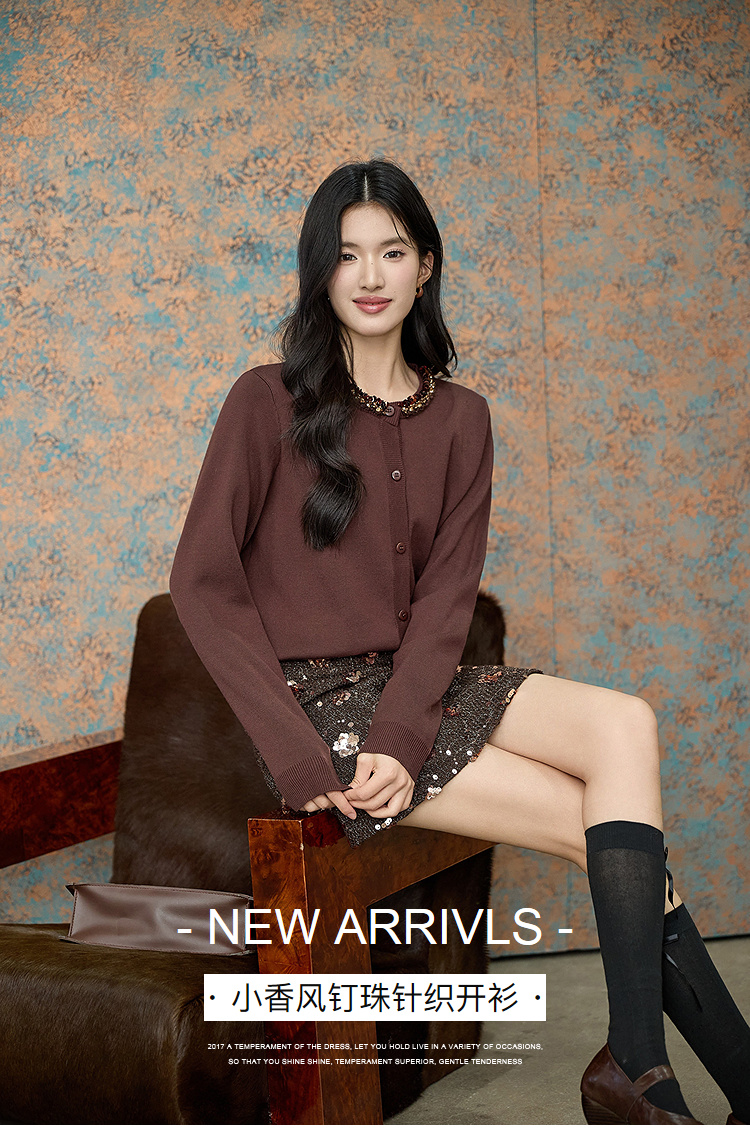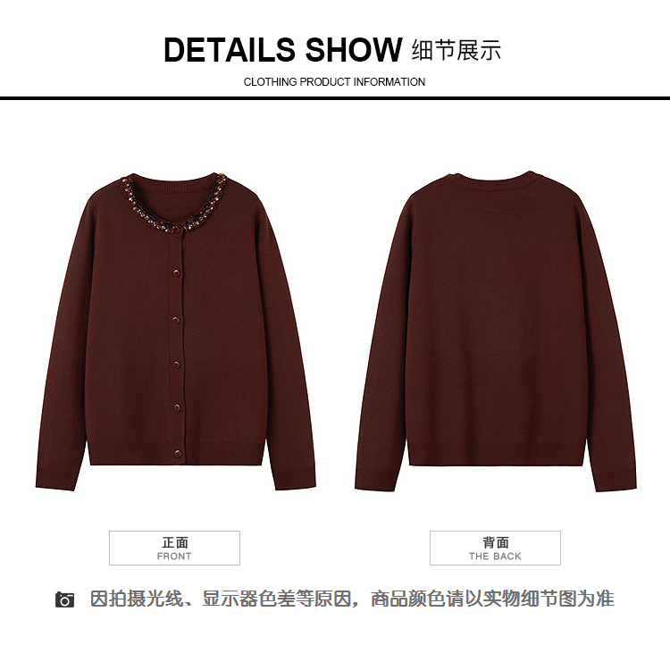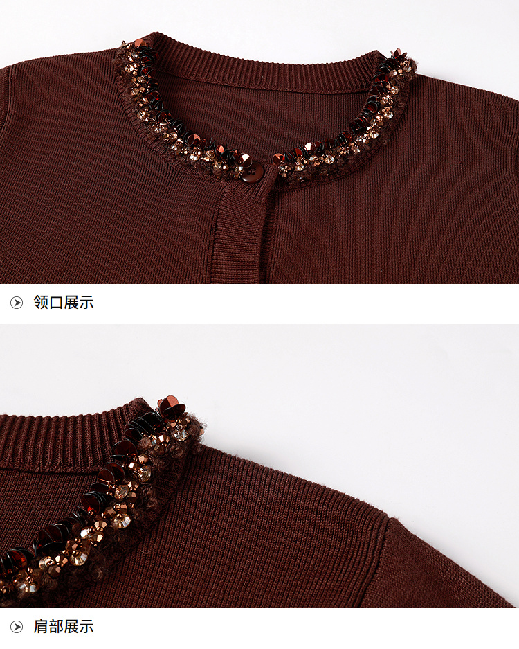 奢姿大码女装2025冬季小香风针织衫复古钉珠毛衣胖妹妹气质上衣9854691082A