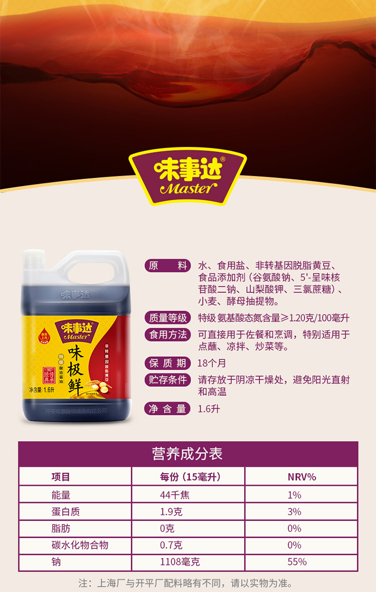 【百】味事达(Master) 味极鲜特级酿造酱油 1.8L