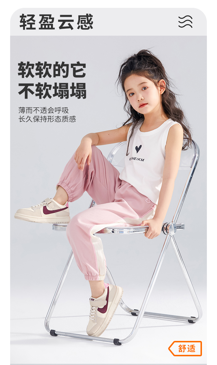 【凉感顺滑】【120-160】【可可鸭】男女童轻薄长裤儿童夏季防蚊裤(97.0%再生纤维素纤维 3.0%亚麻)
