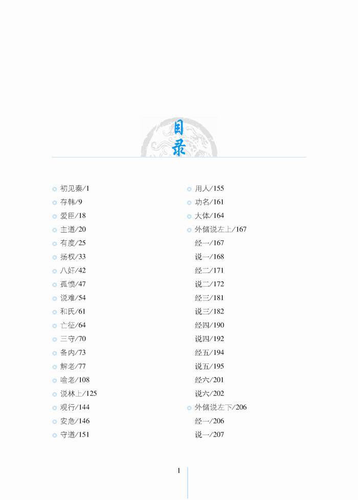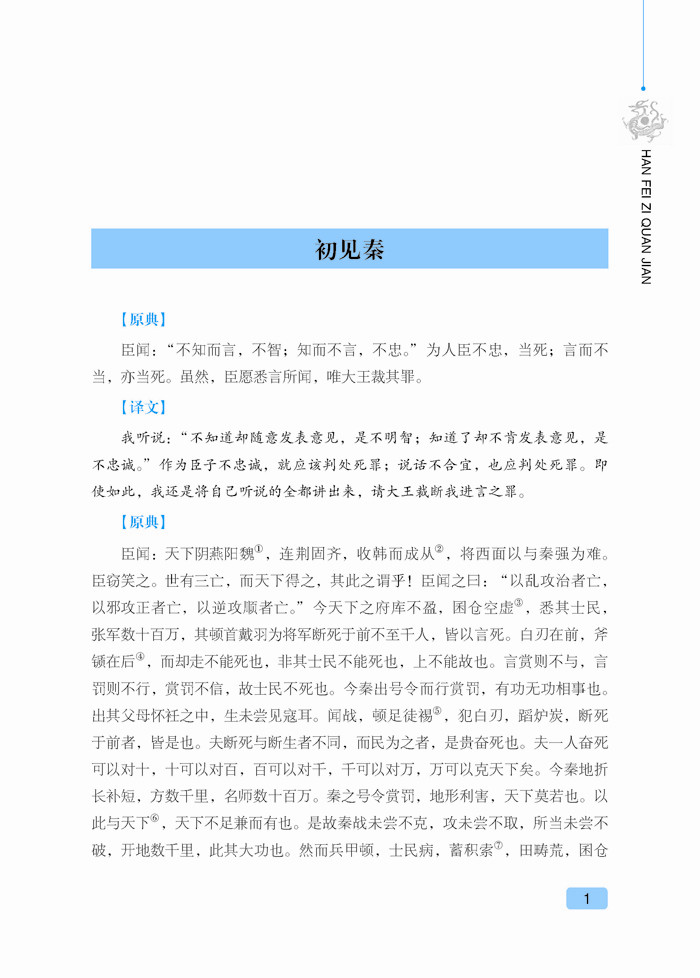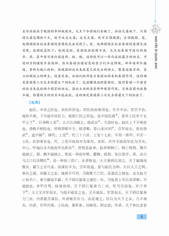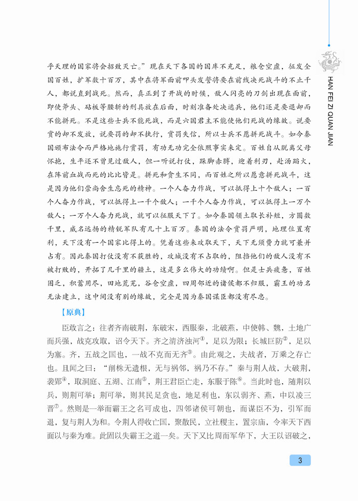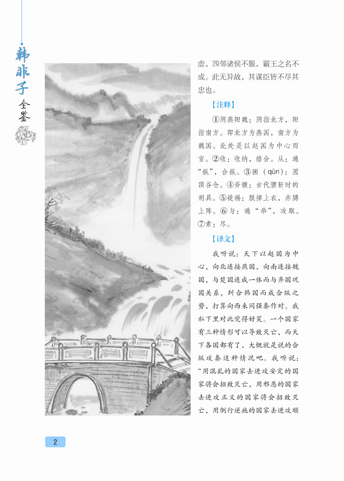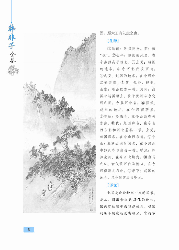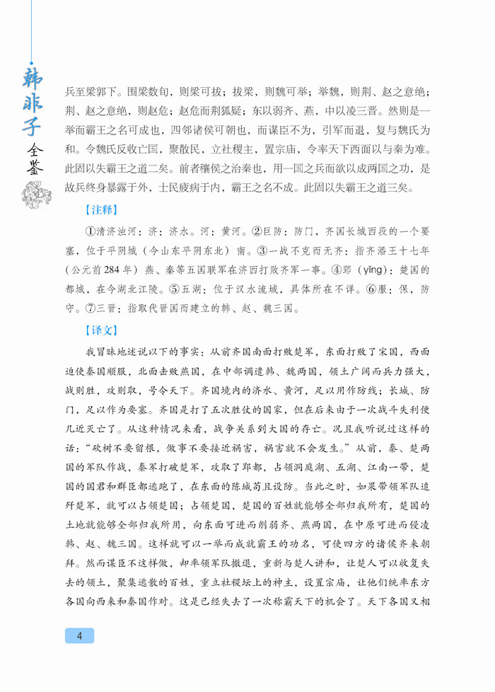 《韩非子》是中国古代著名思想家韩非的著作,共有文章五十五篇,其文章风格严峻峭刻,干脆犀利,在先秦诸子散文中独树一帜,为法家集大成之作品。该书就其主体来看,是一部政论性巨著,它重点阐述了法、术、势相结合的法治理论,其目的是为专制君主提供积极的主张,达到了先秦法家理论的最高峰。时至今日,《韩非子》对于我们了解中国的社会政治、思想文化仍有较强的借鉴意义。本书甄选了《韩非子》最精彩的篇章,对原典作了精准的注释和翻译,便于您更好地品读国学精粹,感知先贤智慧。