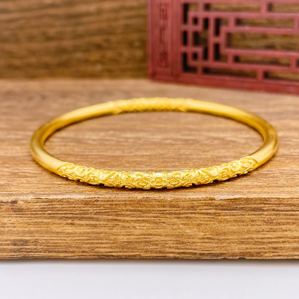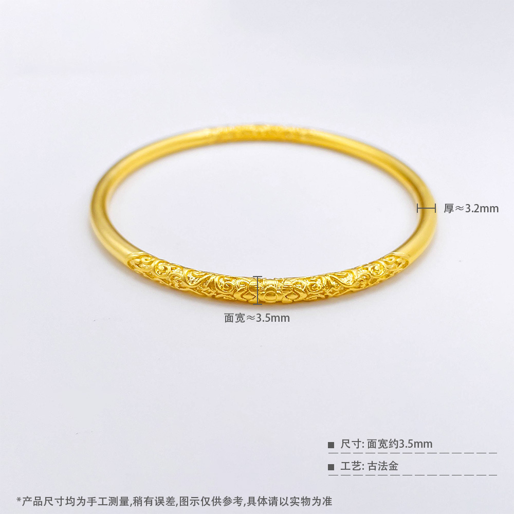 【限时克减150元】足金999.9 古法实心固口双边卷草纹手镯(面宽约3.3-3.7mm)(AEWZGFSZ00025)(预售产品下单后不退款不退货不换货不补差价