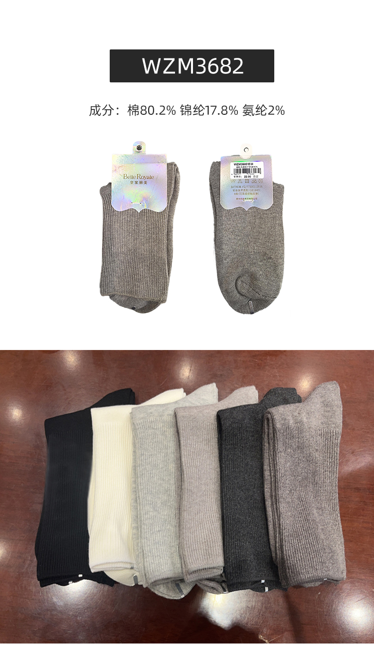 【39元5双,下单数量拍5】皇家丽美女士袜子秋冬棉袜WZM3676WZM3682