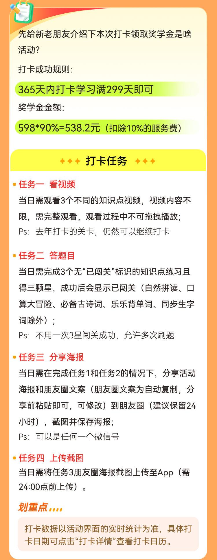 【天天练618】千呼万唤打卡领取奖学金 365天内打卡分享满299天得奖学金