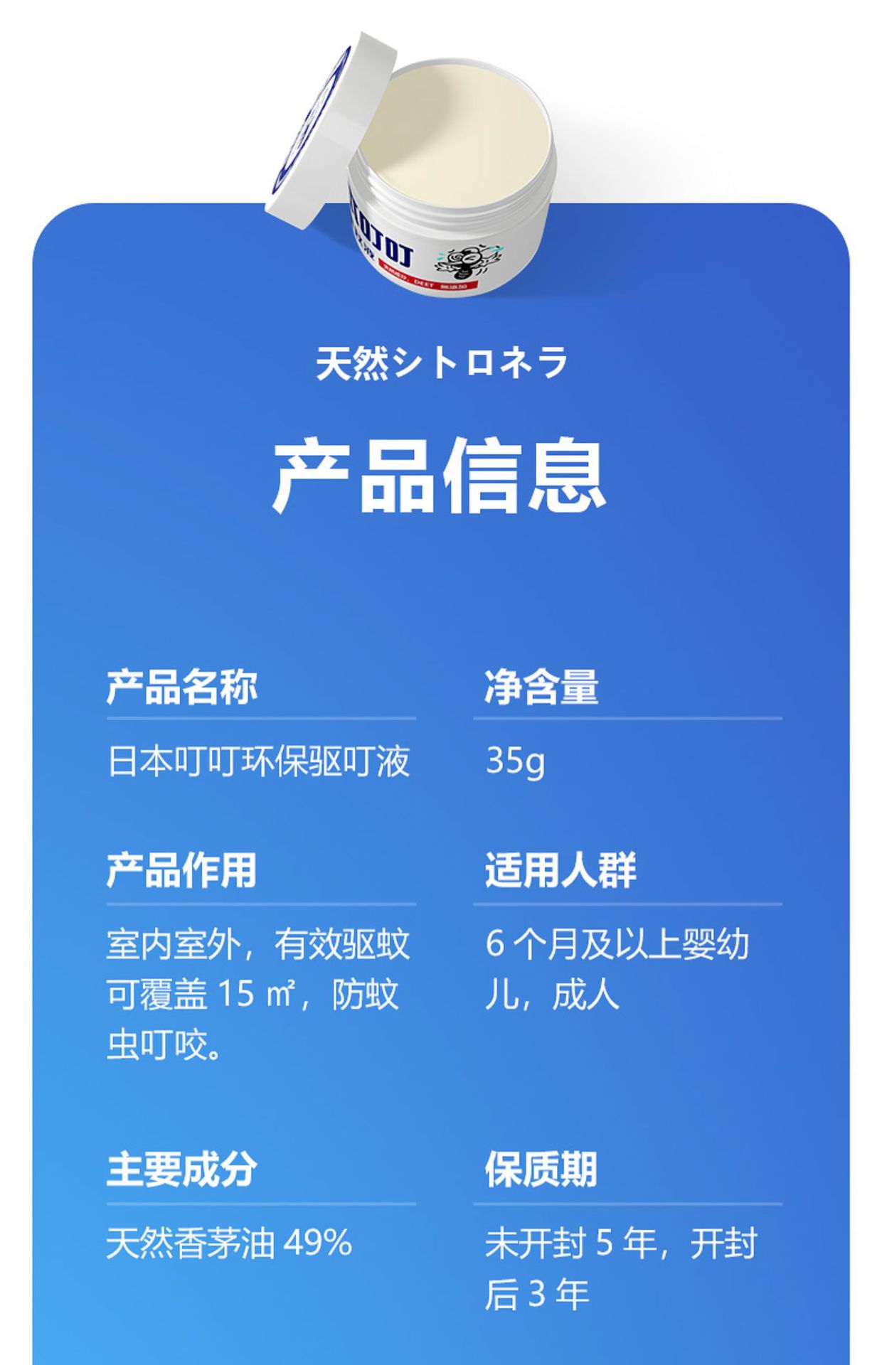 【首创环保驱蚊法】日本叮叮环保驱叮液  环保+驱叮+方便+安全+量大=日本叮叮  多重首创保你清静一夏远离蚊子  驱蚊液驱蚊水驱蚊止痒  35g/瓶 商品图4