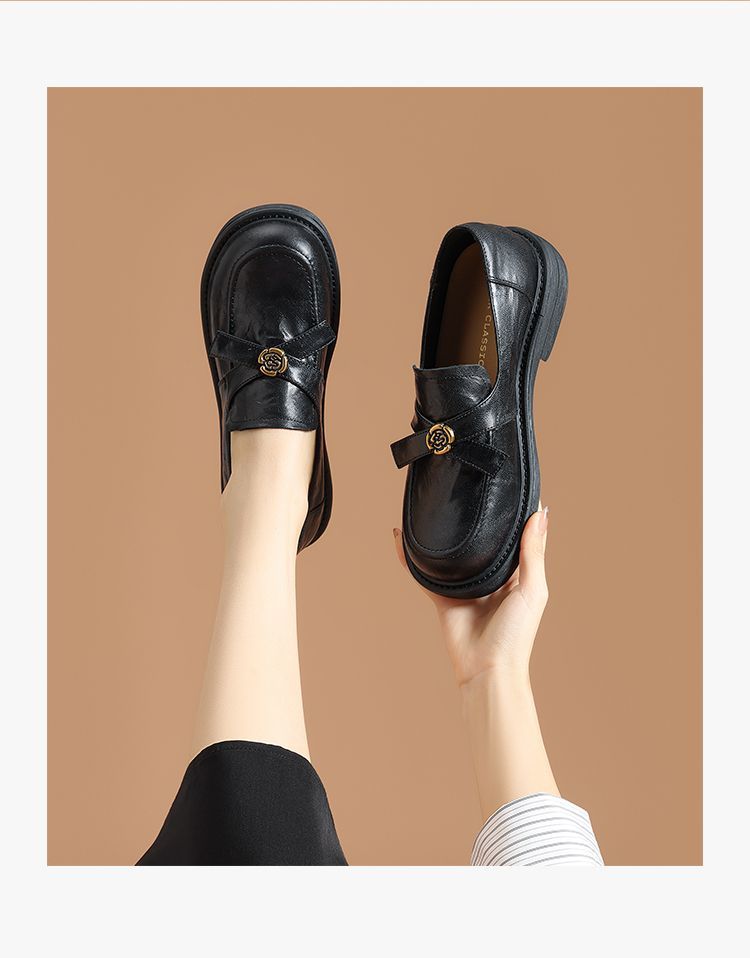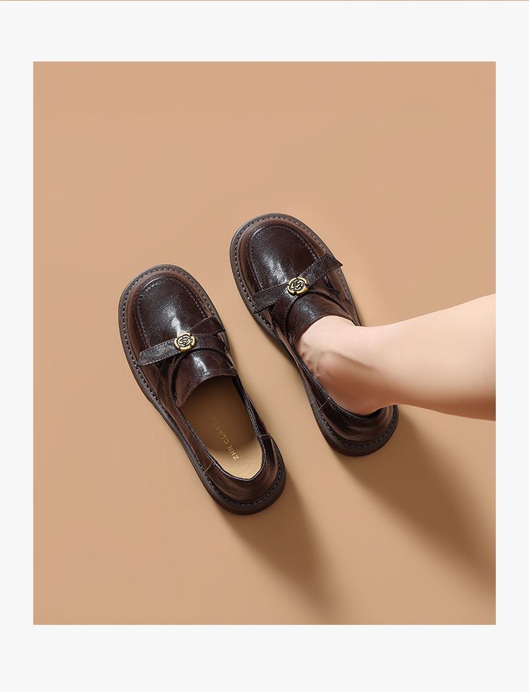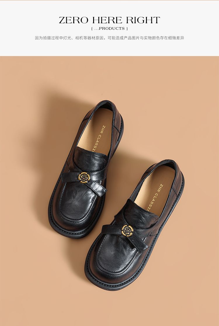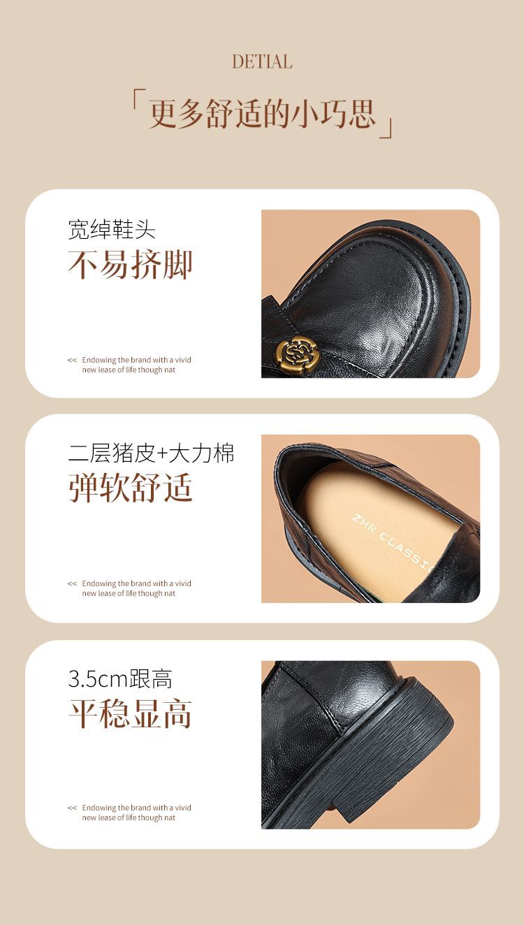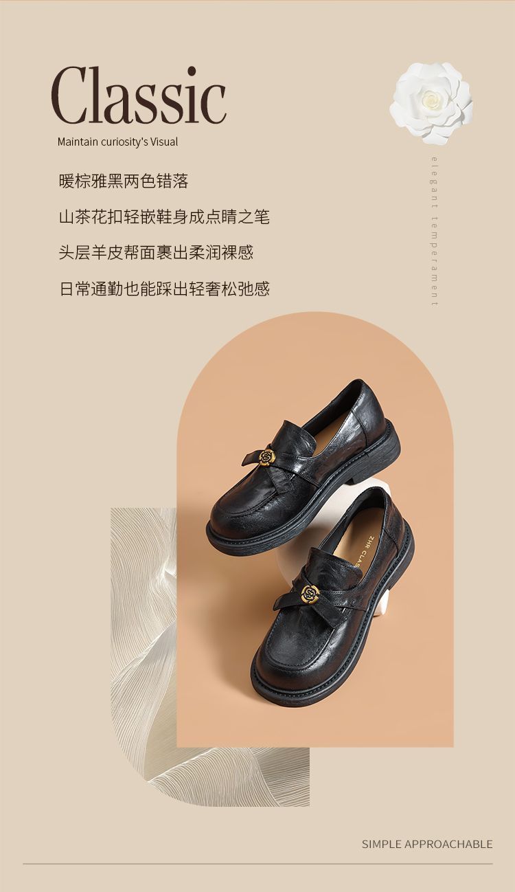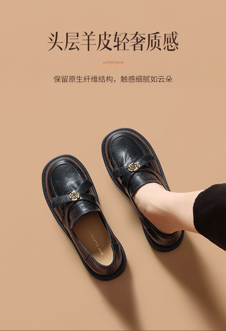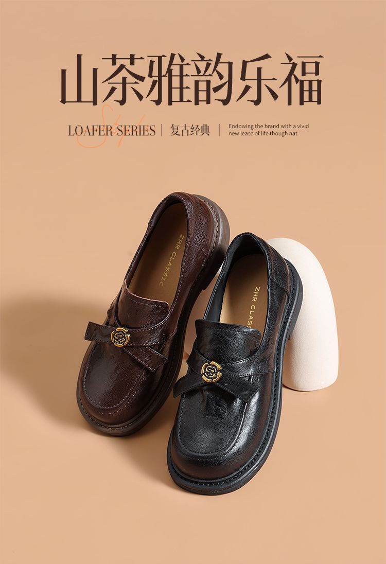 ZHR真皮山茶花英伦风小皮鞋2026春季新款通勤女鞋百搭单鞋乐福鞋