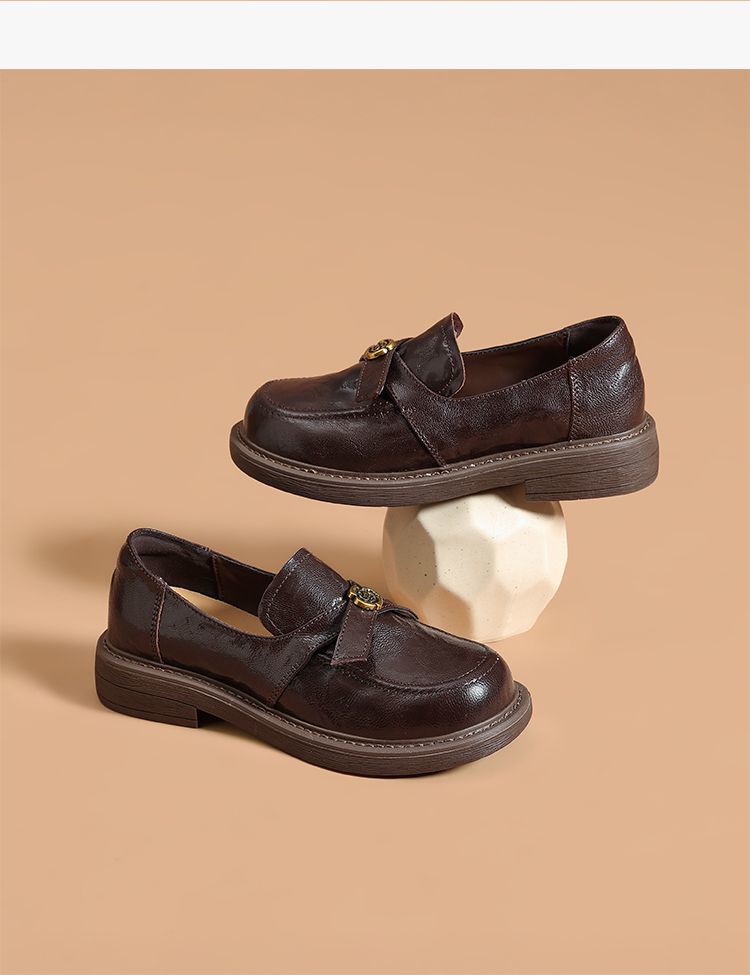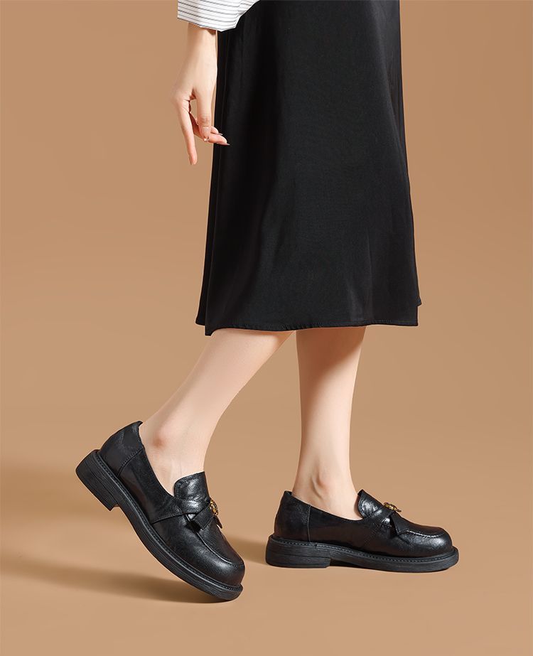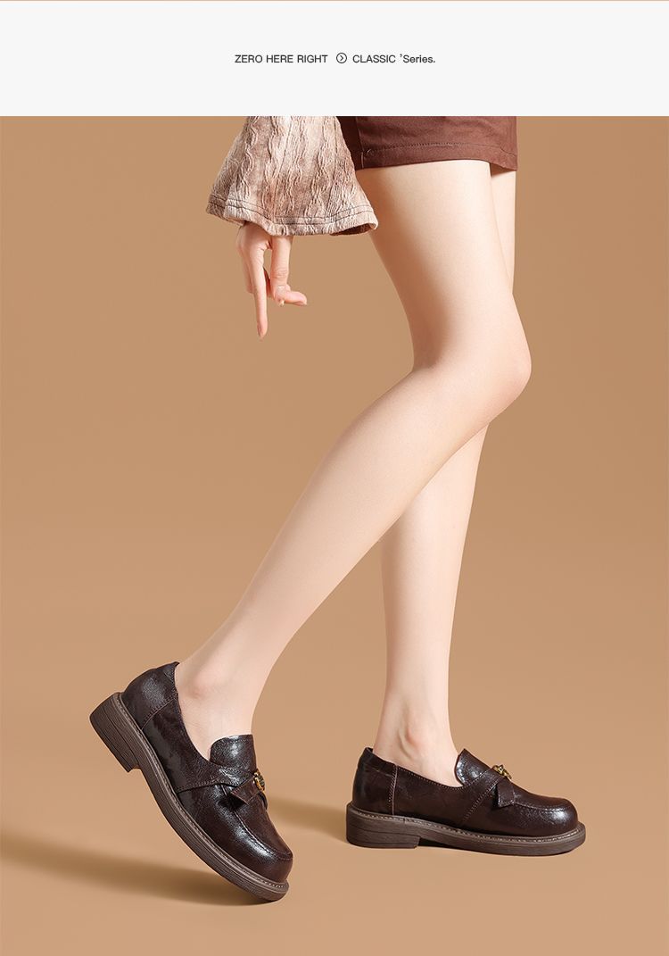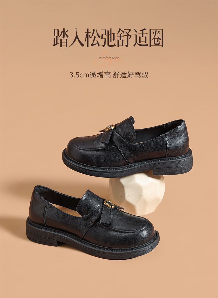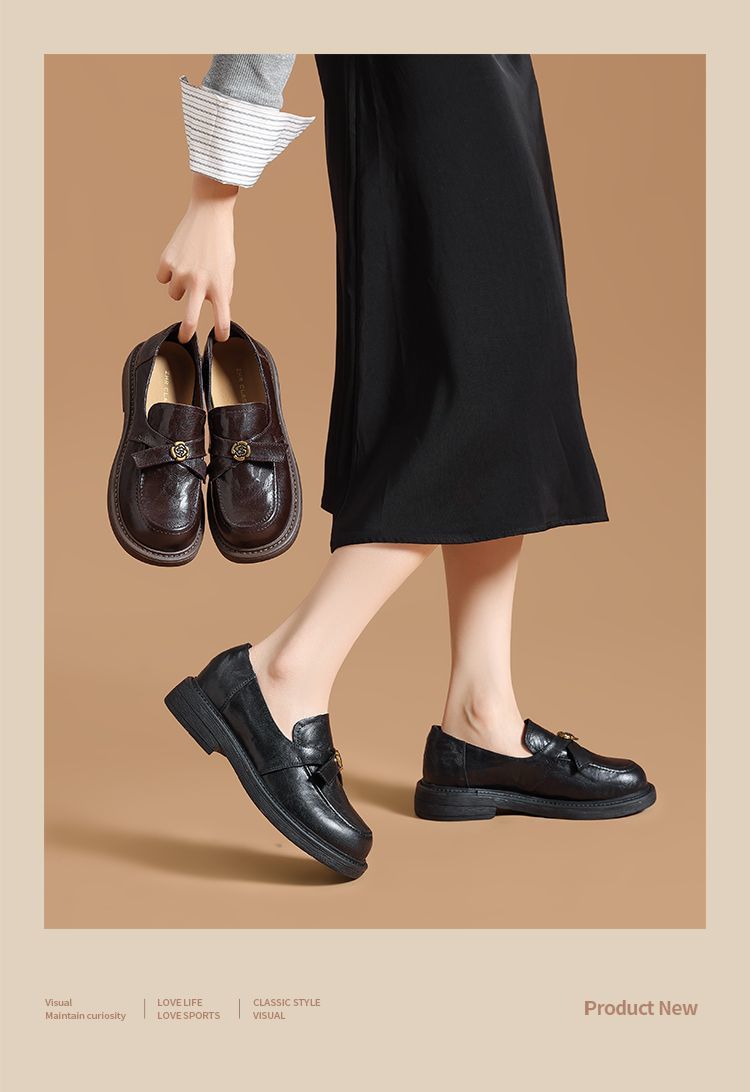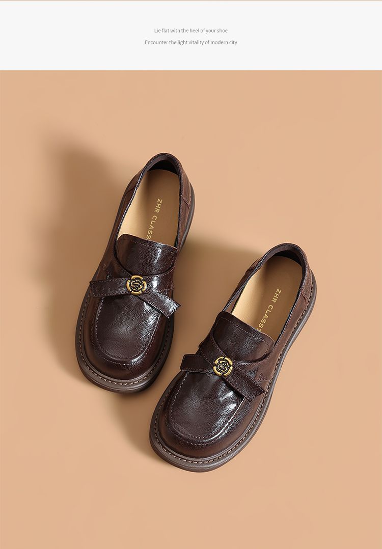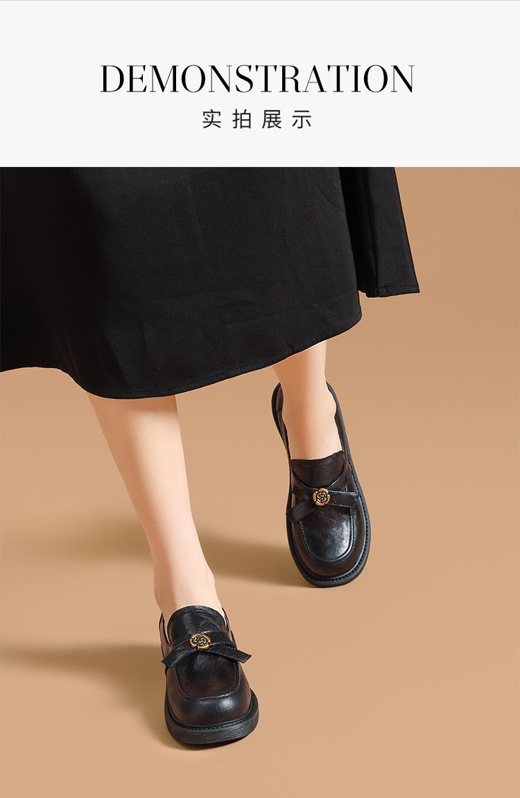 ZHR真皮山茶花英伦风小皮鞋2026春季新款通勤女鞋百搭单鞋乐福鞋