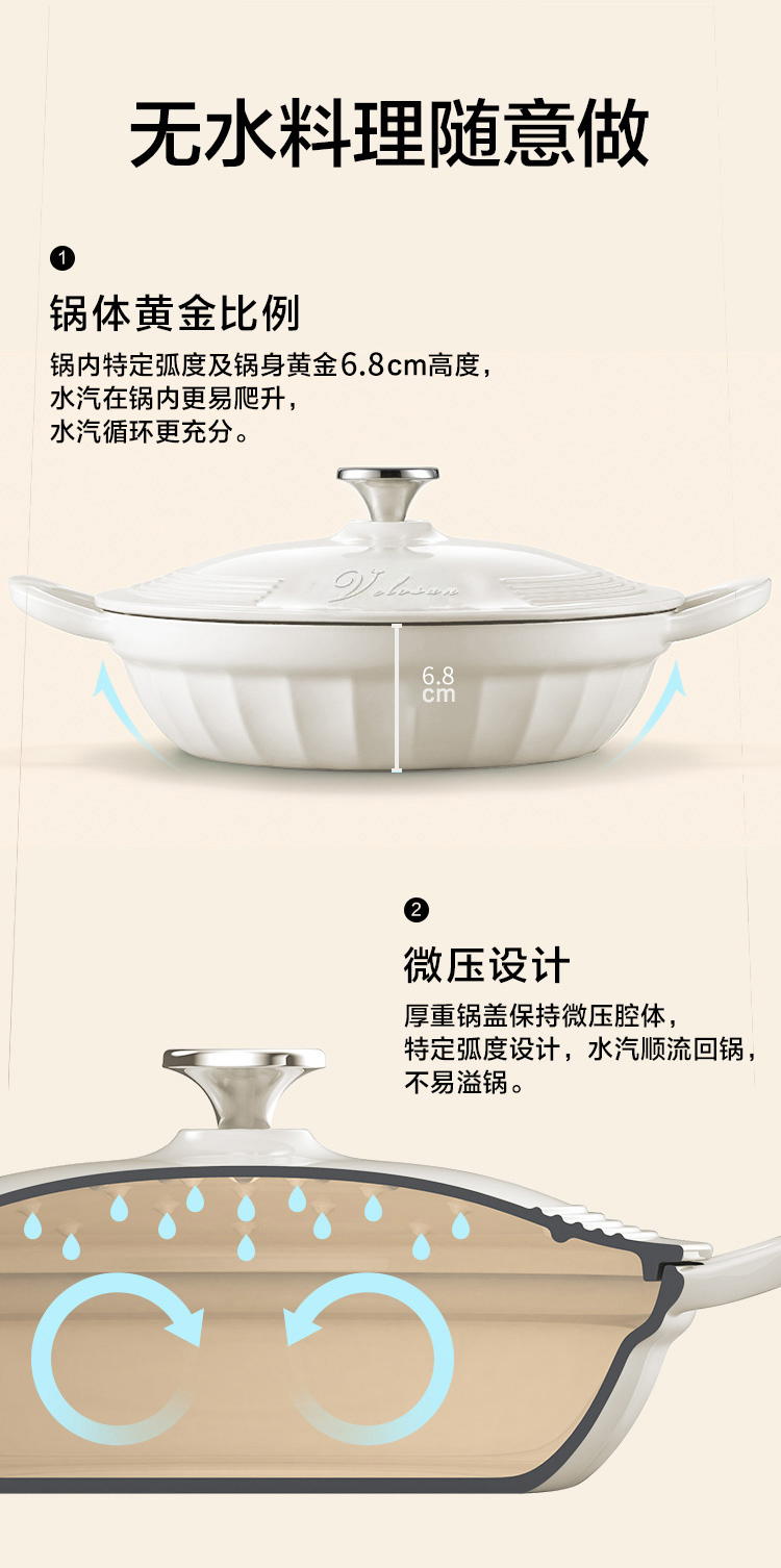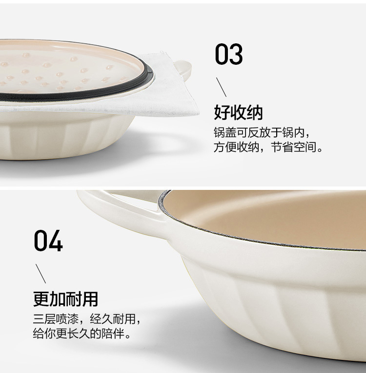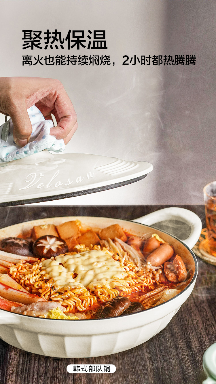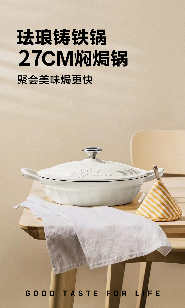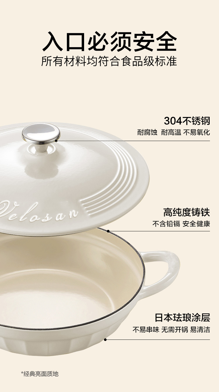 Velosan温仑山布尼卡星白海鲜珐琅锅27CM(松露白)