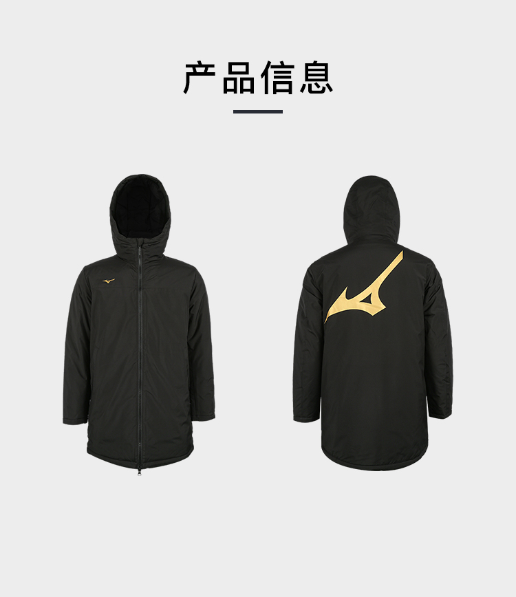 小李子正品Mizuno美津浓足球运动训练中长款棉服成人男P2CE23Z709