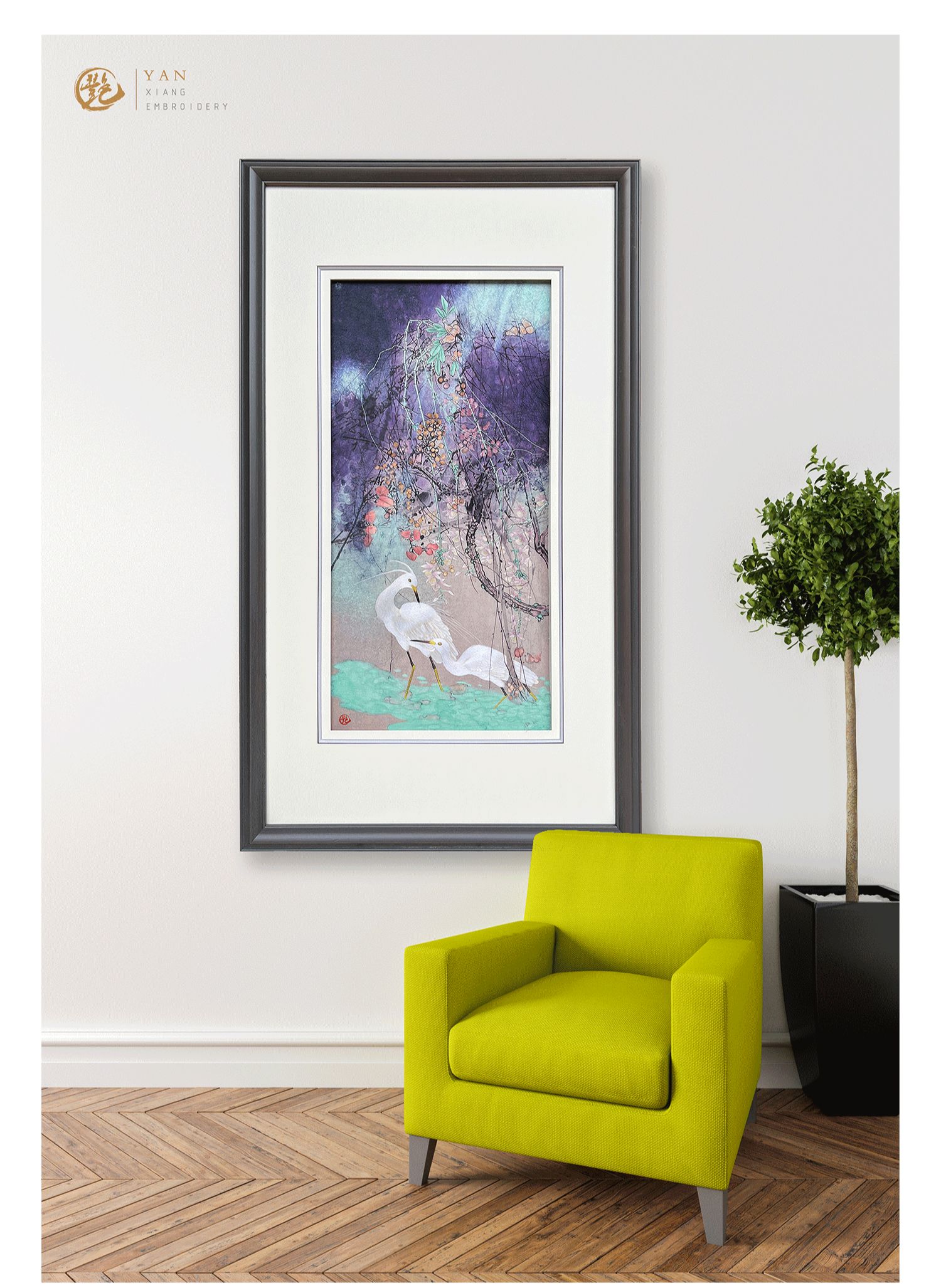 艶 湘绣 原创手绘工笔手工刺绣客厅餐厅玄关新中式挂画