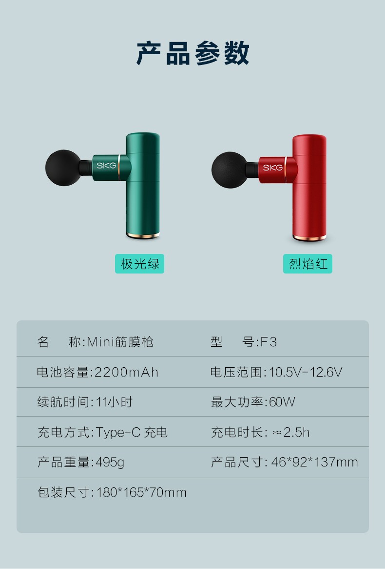 SKG-mini筋膜枪F3肌肉放松器按摩枪多功能健身按摩器