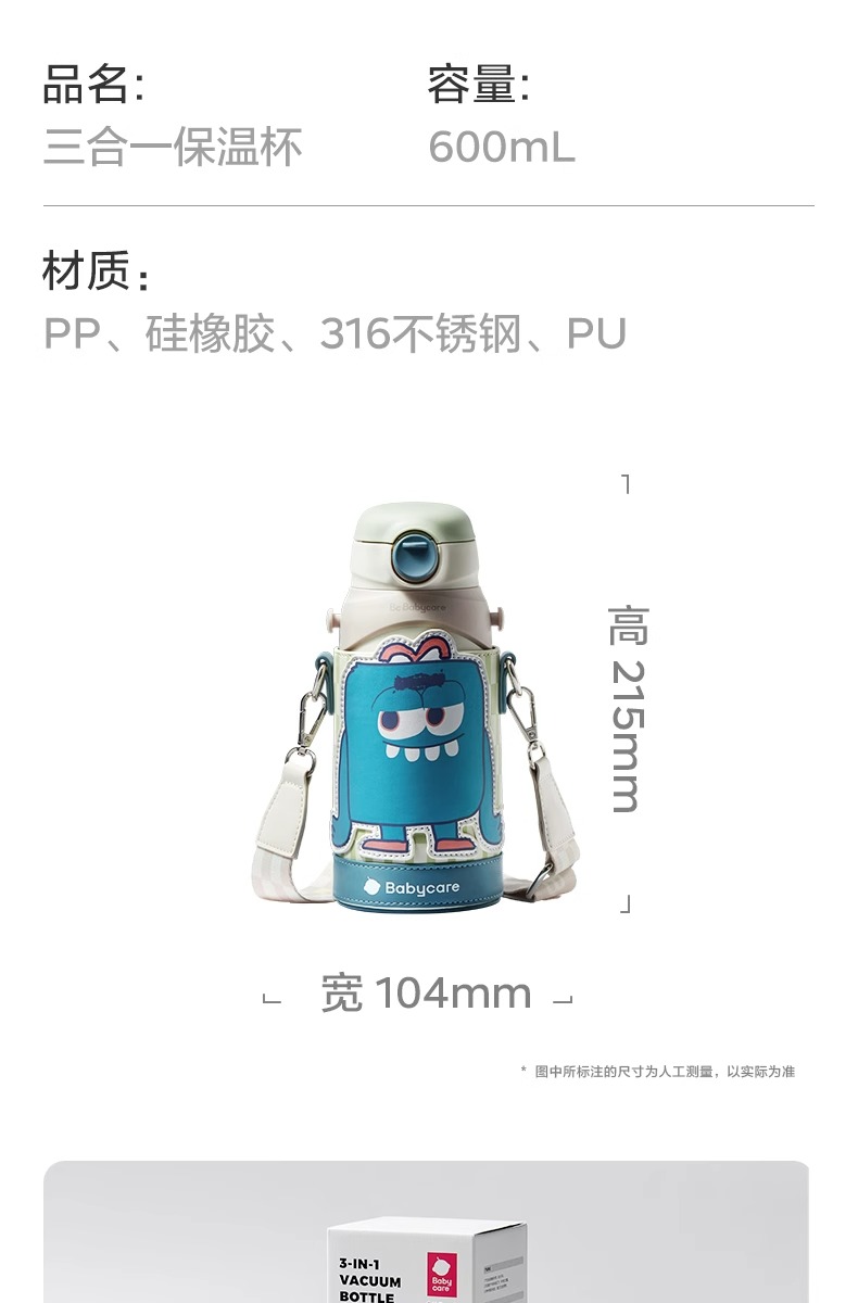 Babycare三合一保温杯(小怪兽款)600mL-洛克黄