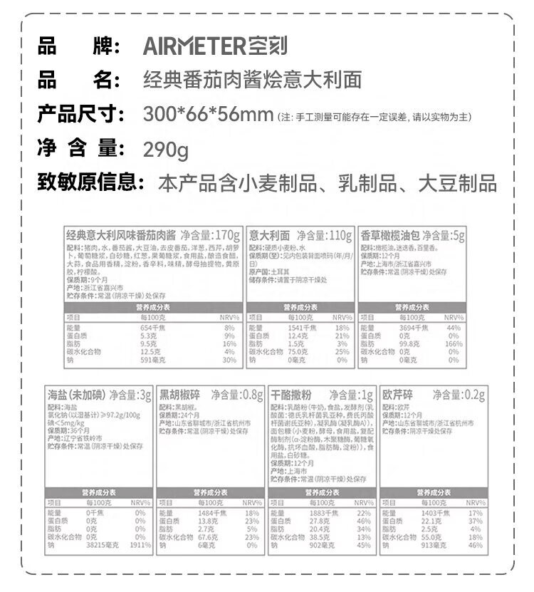 空刻经典番茄肉酱烩意面290g