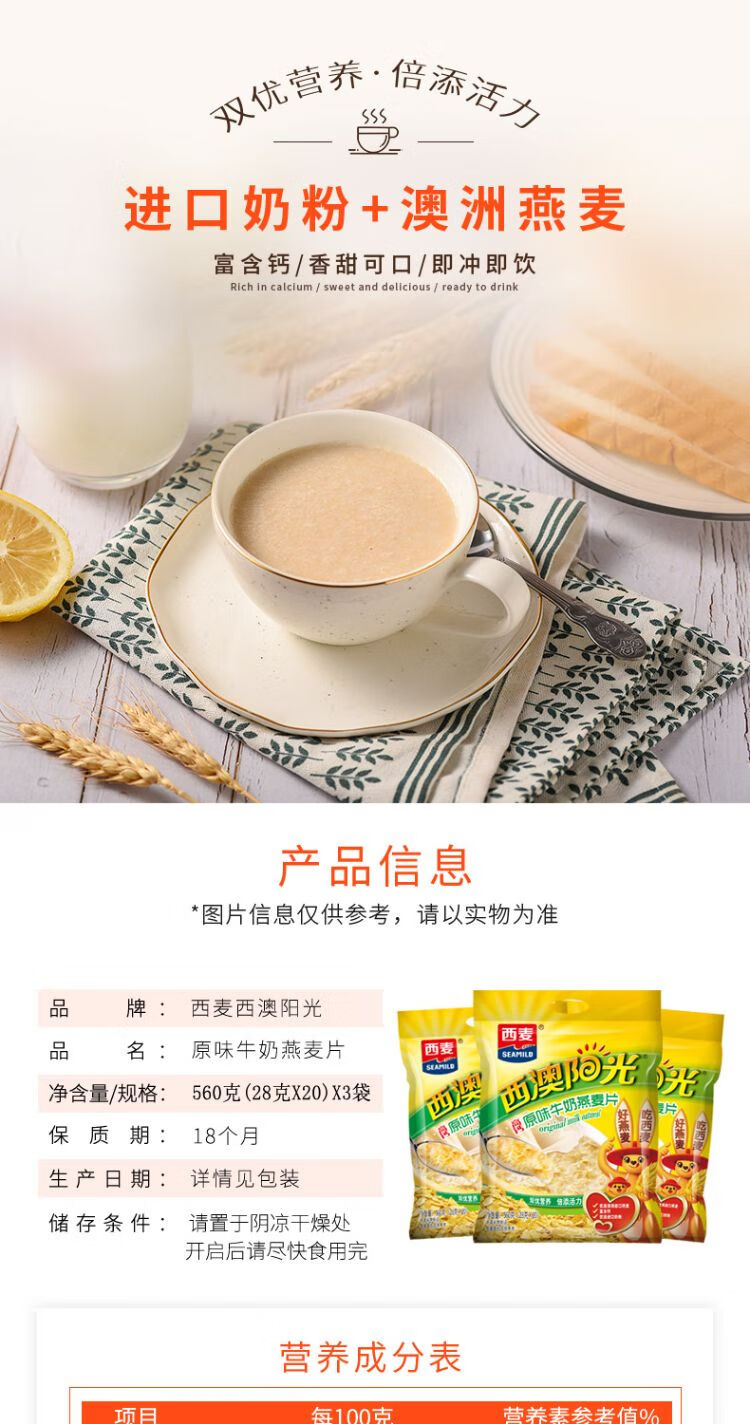 西麦 原味牛奶燕麦片 560g(28g*20)