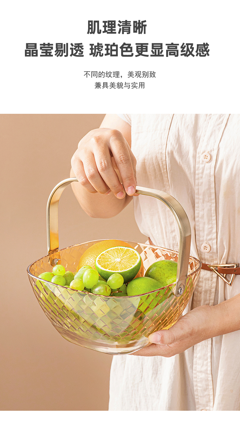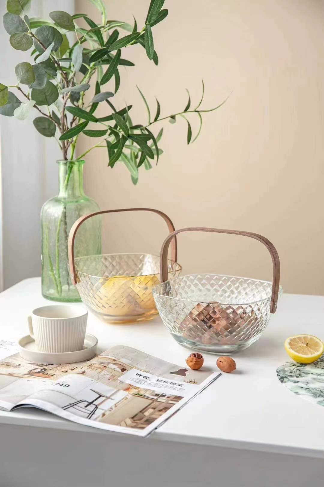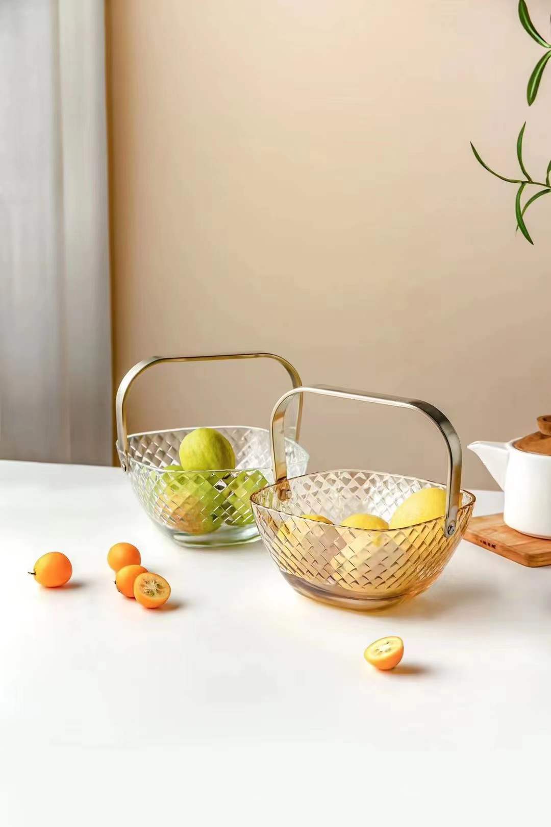 思依不锈钢9寸提手菱形果盘轻奢风小精致玻璃客厅家用北欧创意