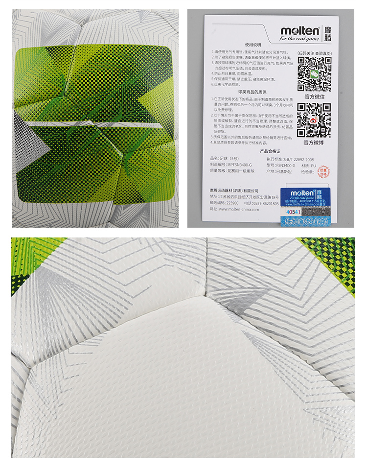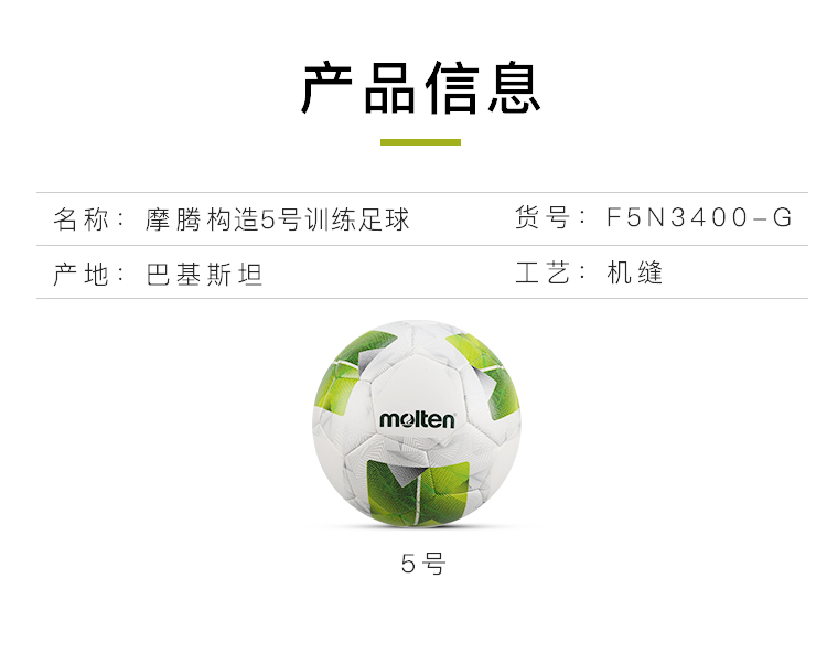 小李子MOLTEN摩腾构造机缝5号训练足球F5N3400G