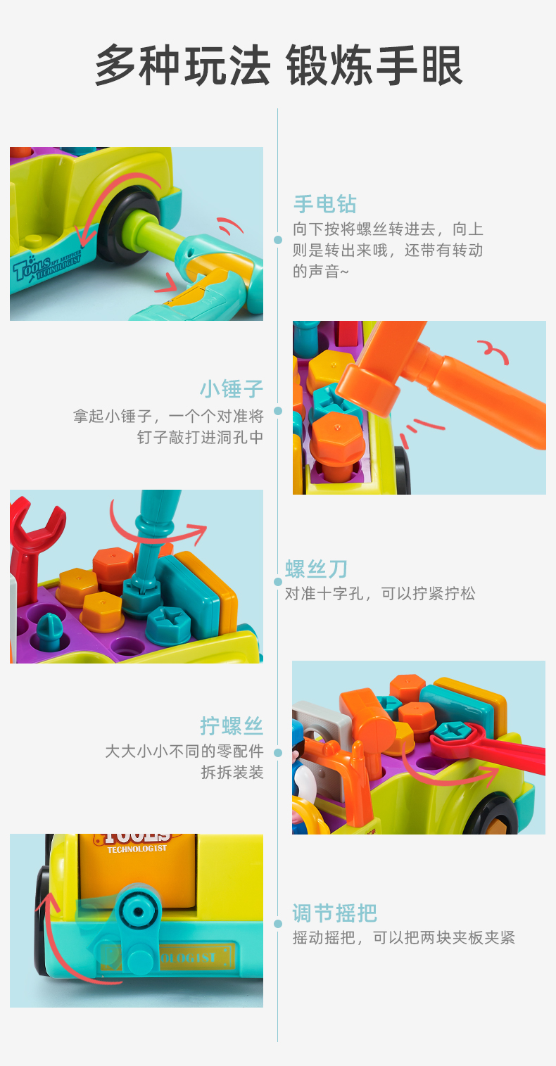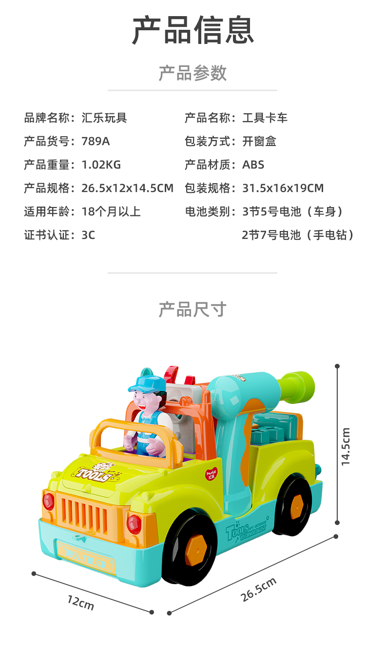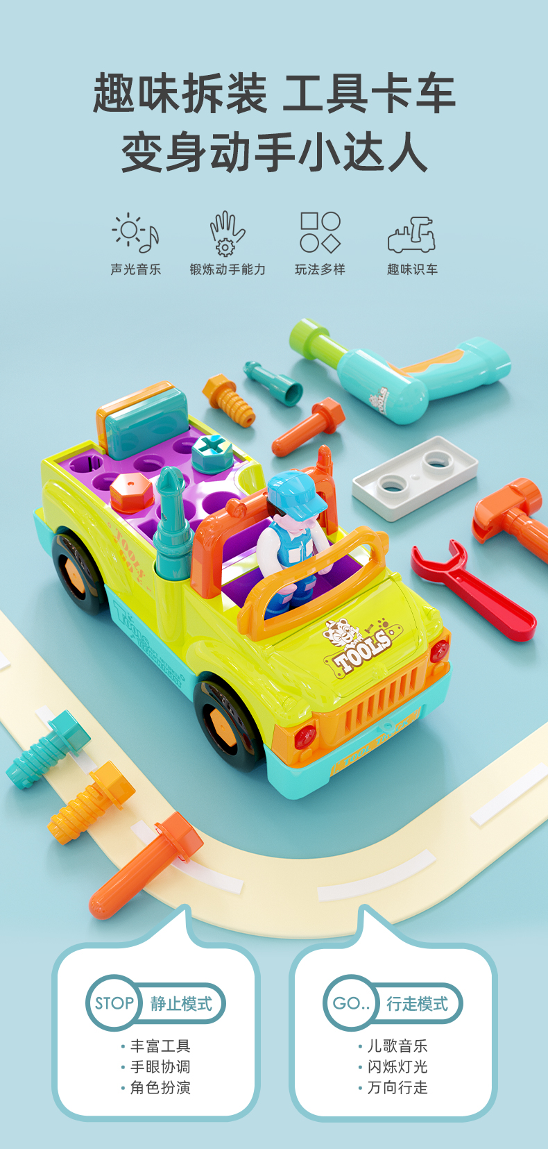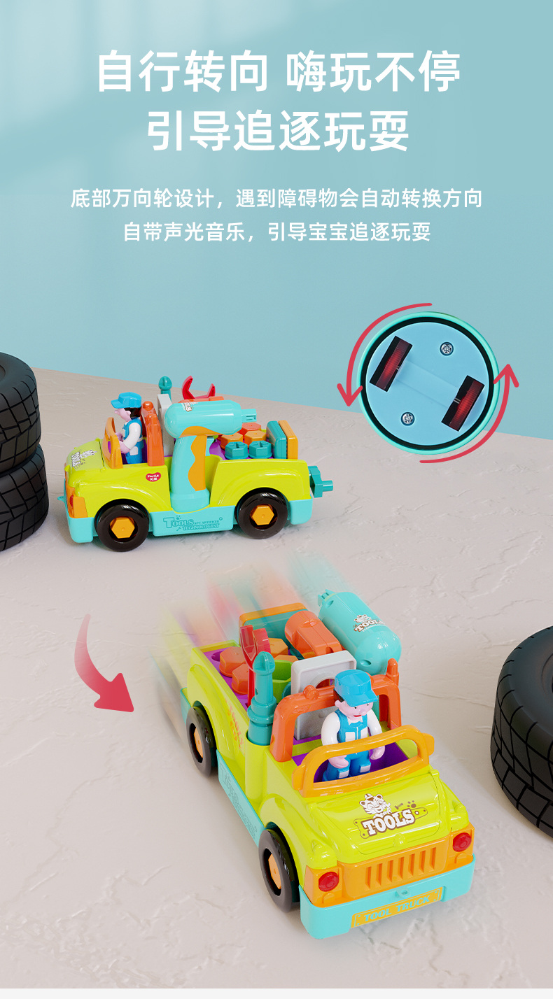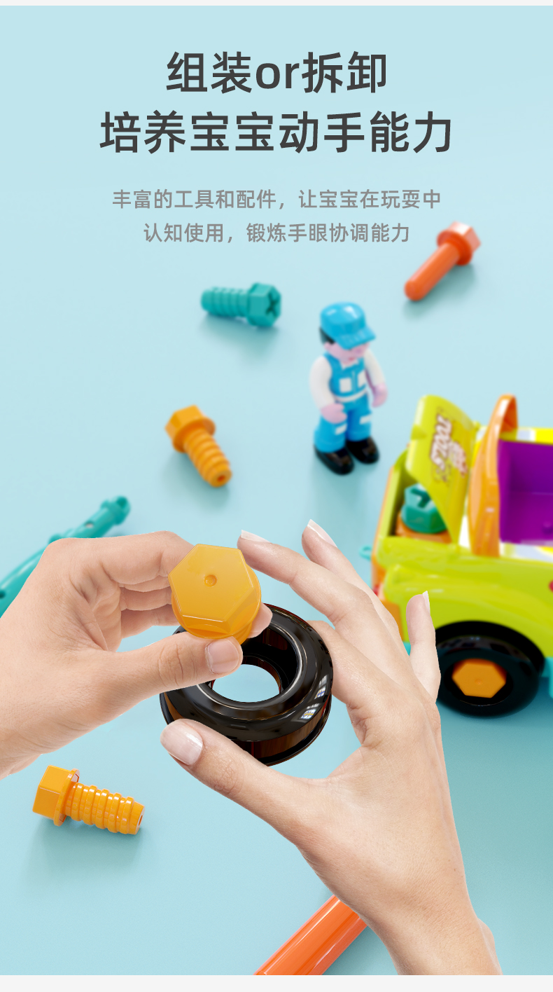 汇乐工具车玩具儿童拧螺丝刀拆装工程卡车可拆卸拼装男孩汽车组装