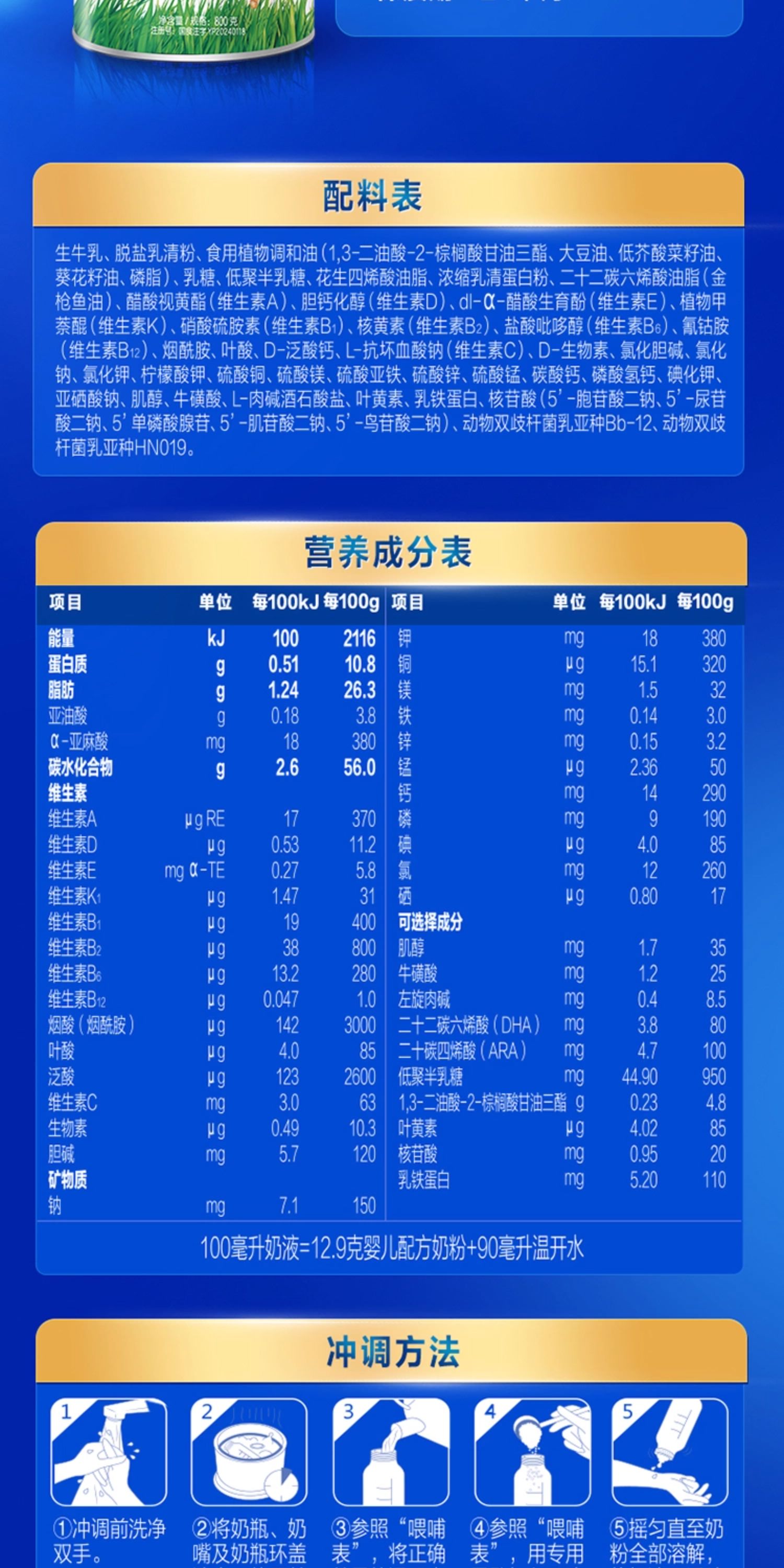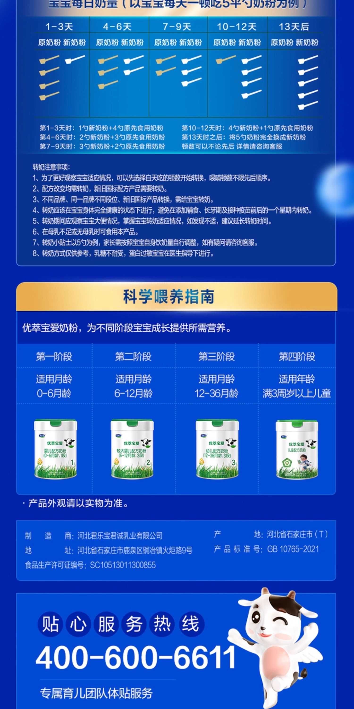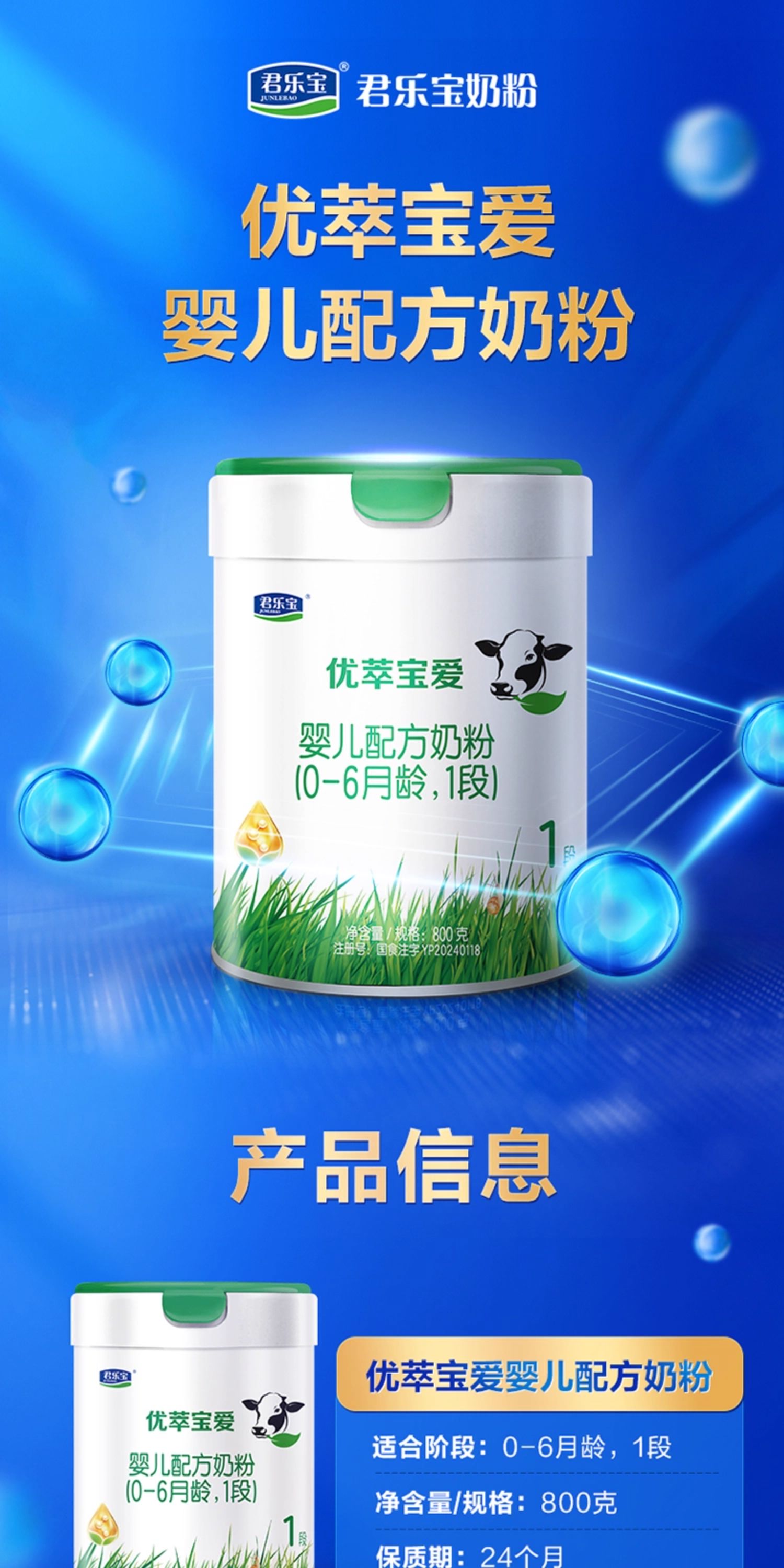 君乐宝优萃宝爱婴儿配方奶粉800g1段
