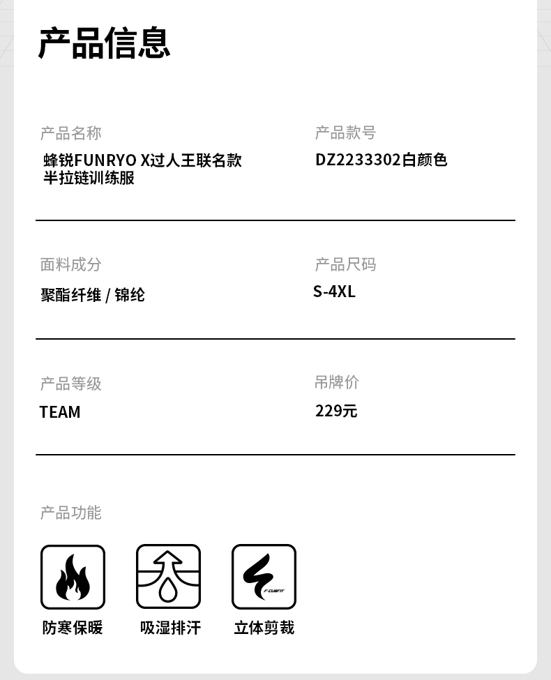 小李子:蜂锐X过人王联名款半拉链足球运动训练服长袖外套