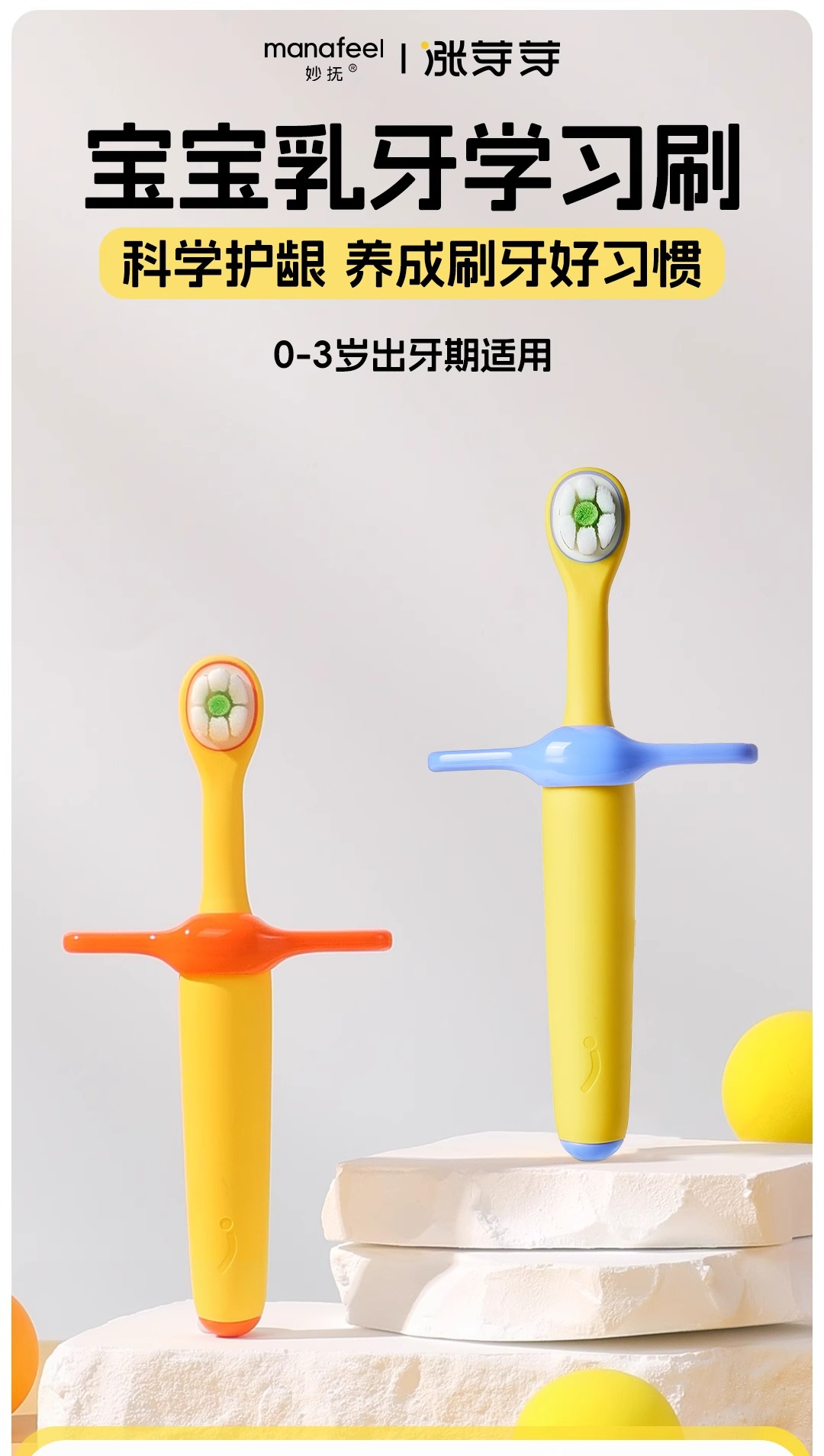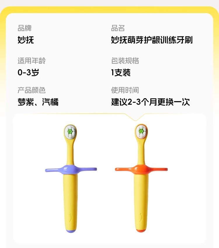 妙抚涨芽芽萌牙婴幼儿0-3岁护龈训练牙刷(颜色随机)