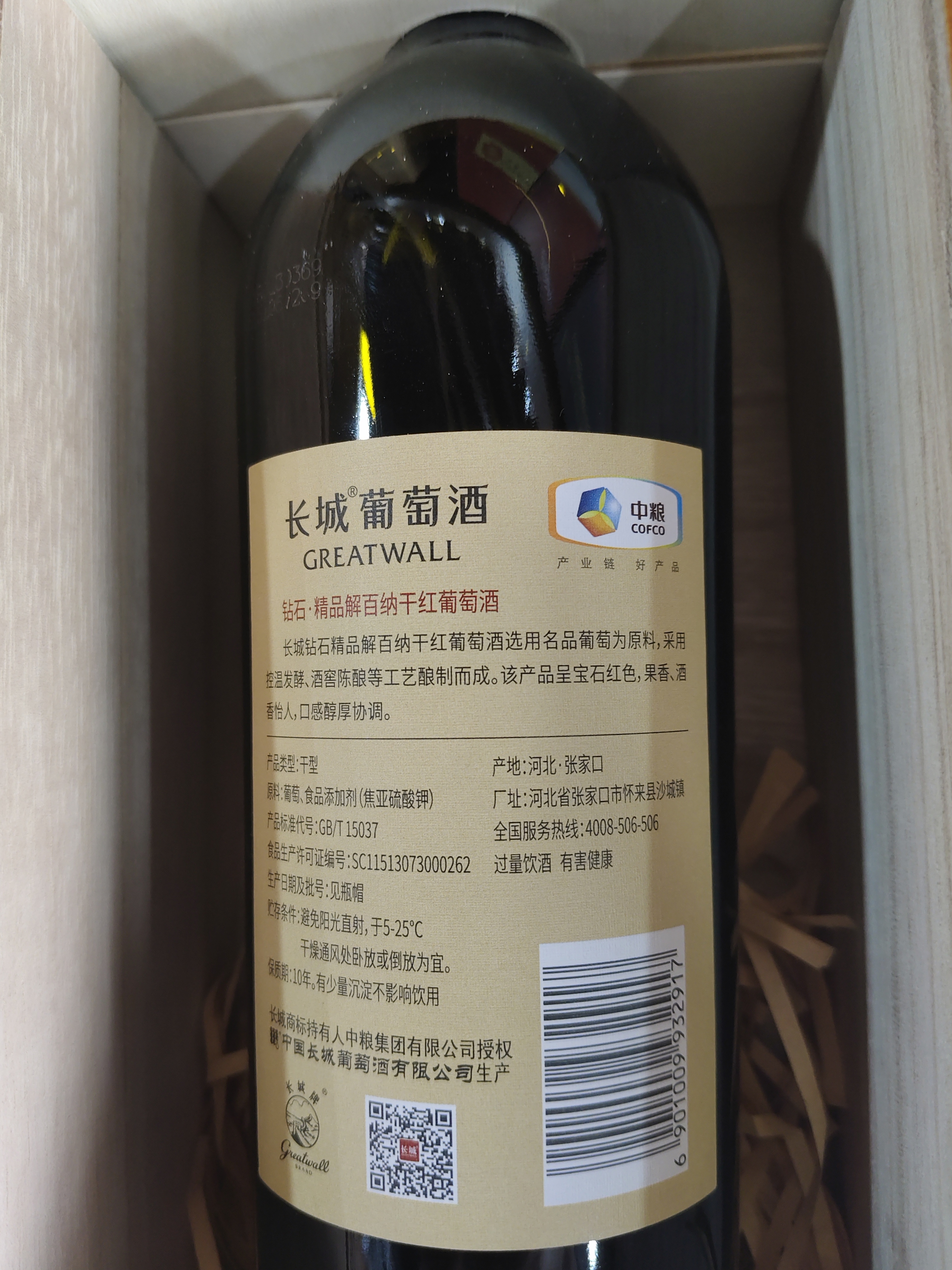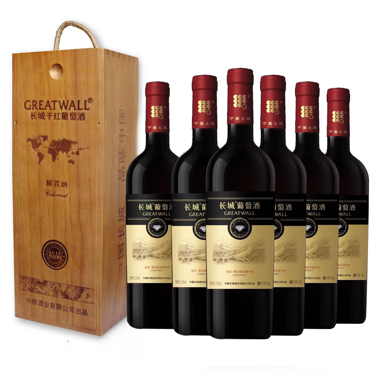 长城钻石精品解百纳干红葡萄酒 酒精度12.5度 整箱750ml*6瓶包邮
