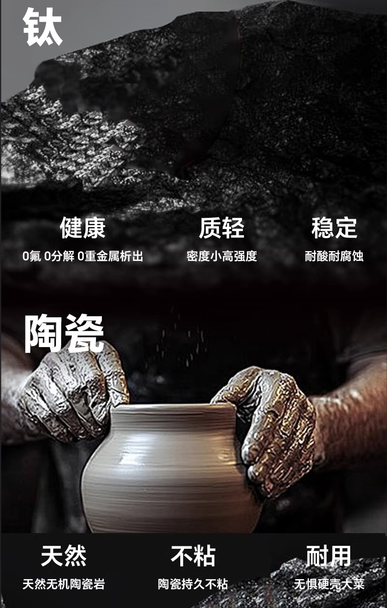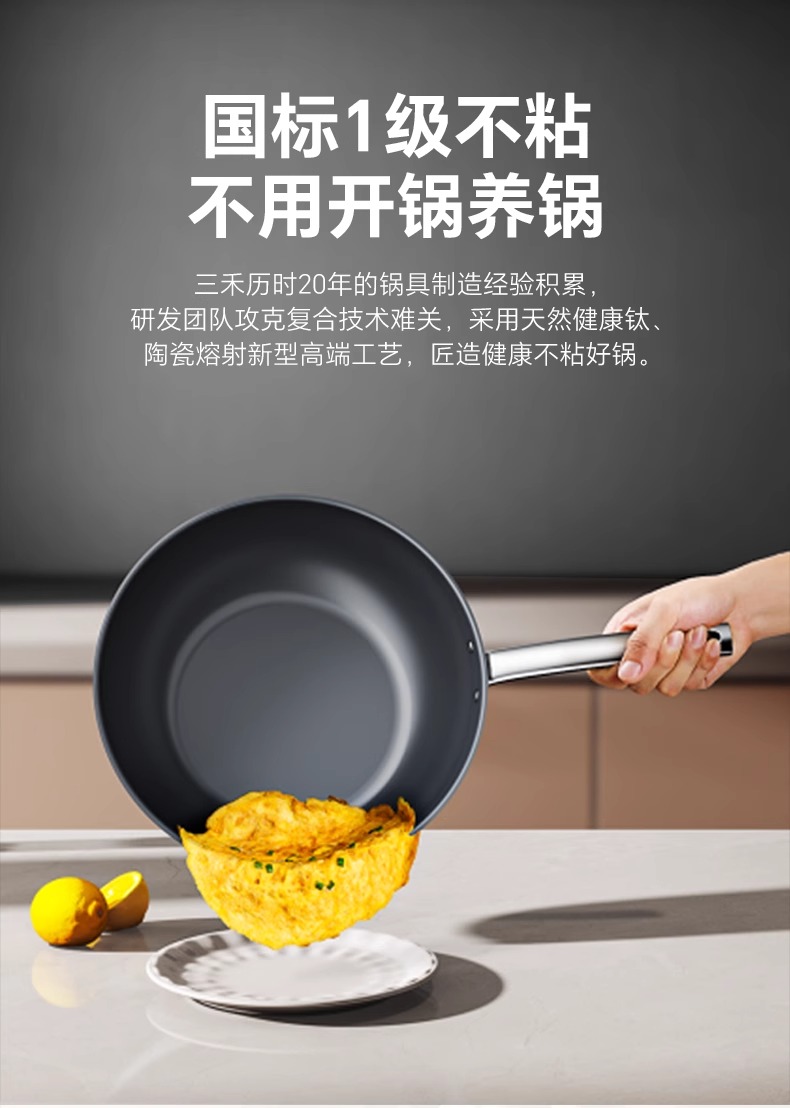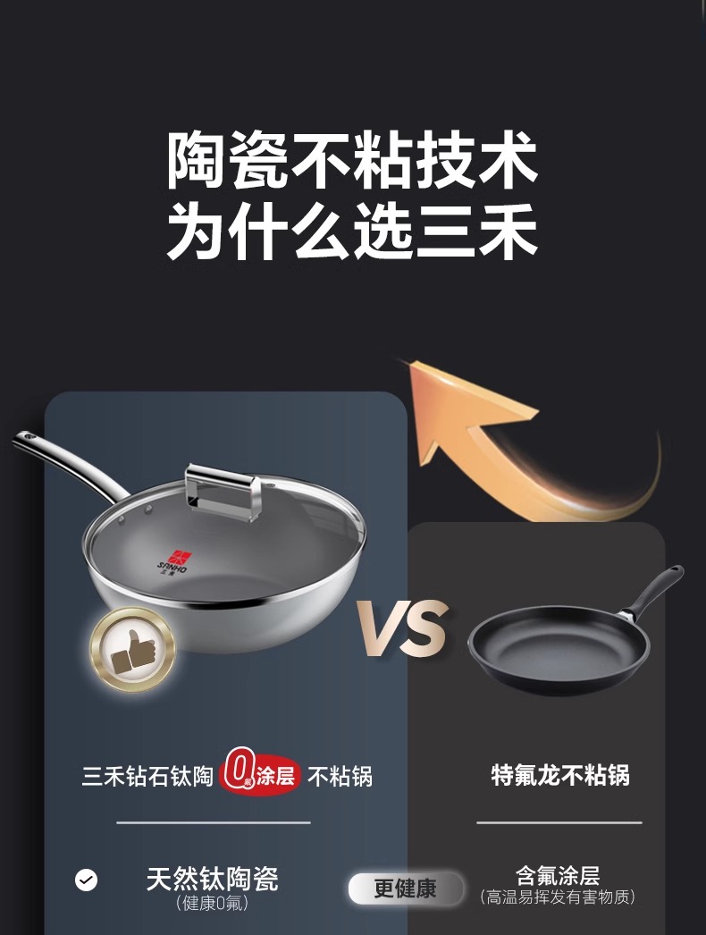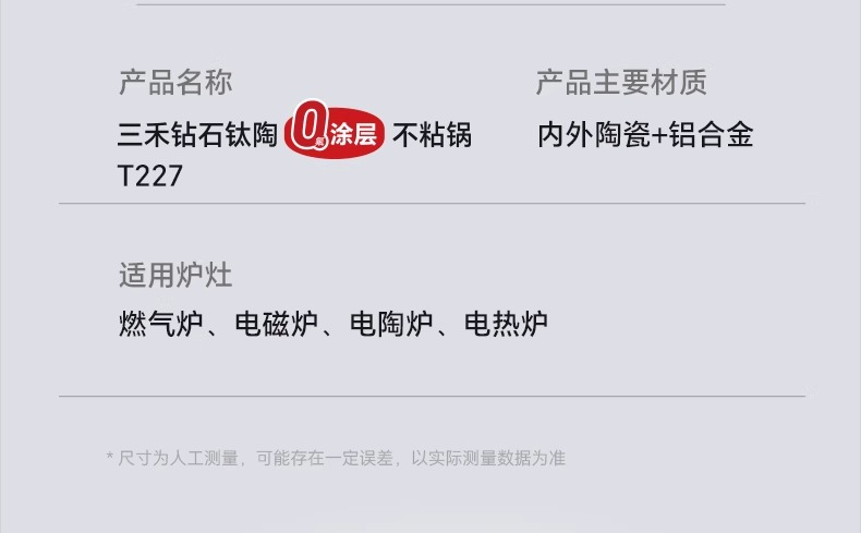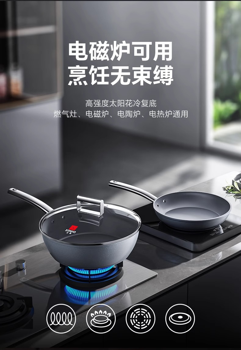 【特惠清仓5折,最后3套,无货退款】三禾钻石钛陶0氟超级陶瓷家用电磁炉燃气灶通用煎锅炒锅套装