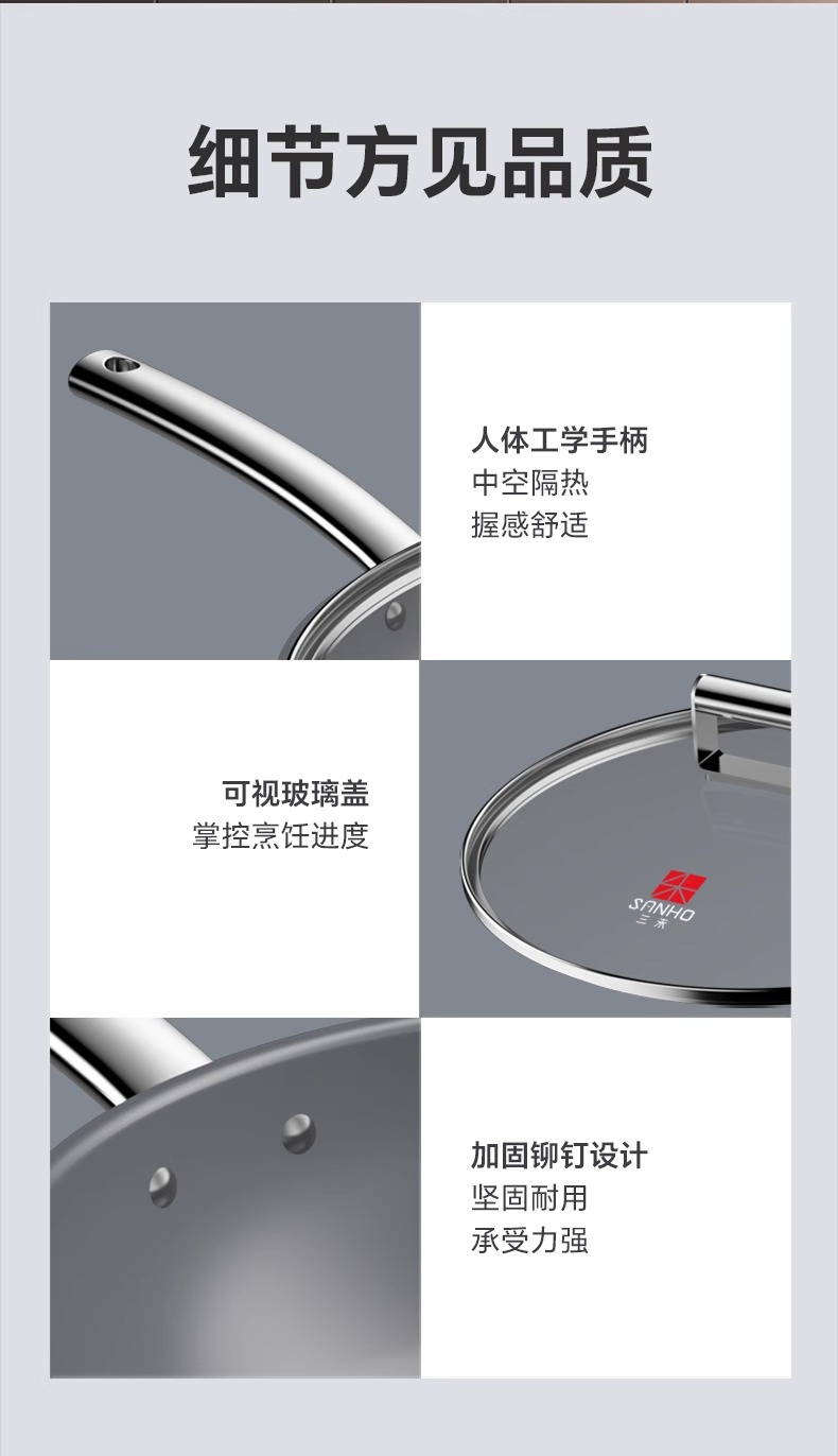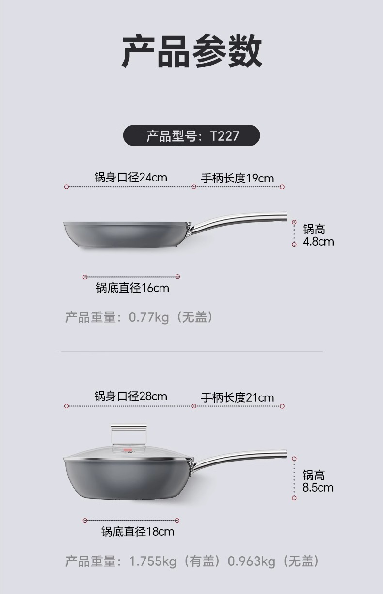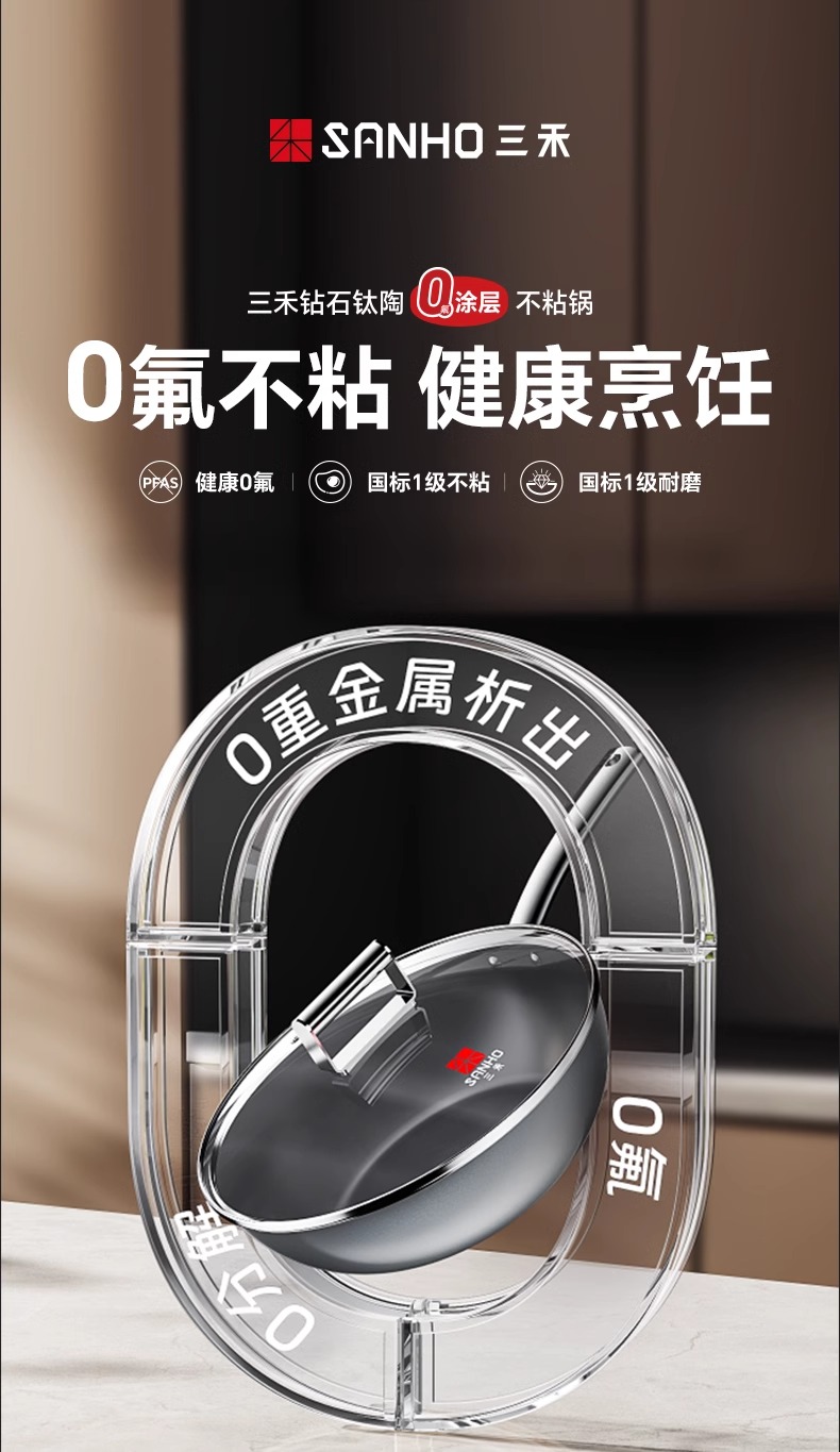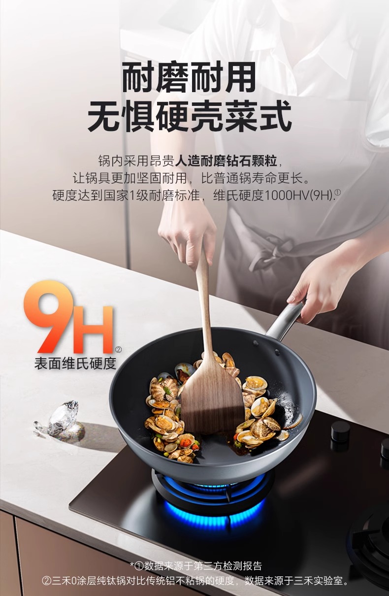 【特惠清仓5折,最后3套,无货退款】三禾钻石钛陶0氟超级陶瓷家用电磁炉燃气灶通用煎锅炒锅套装