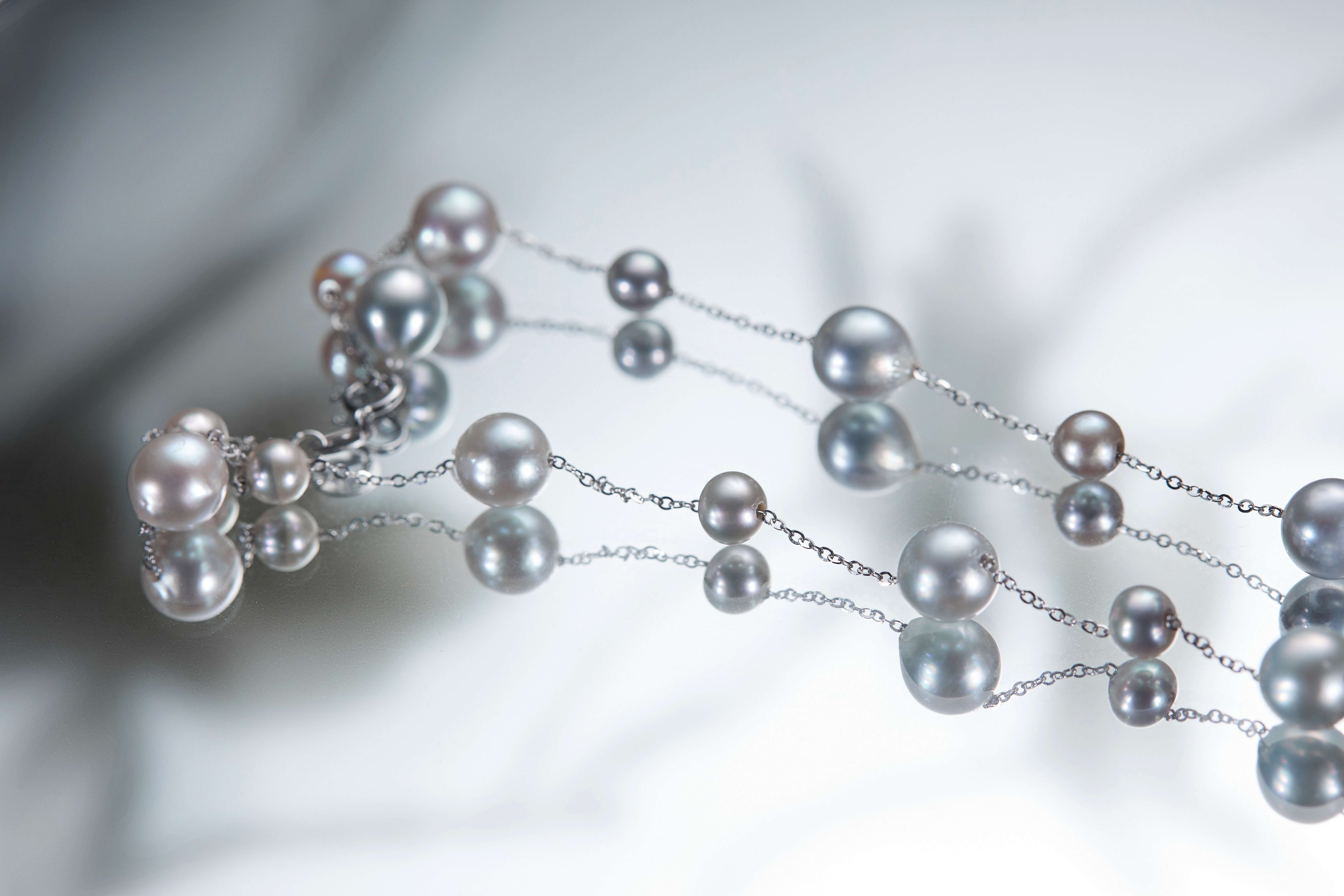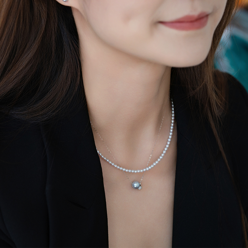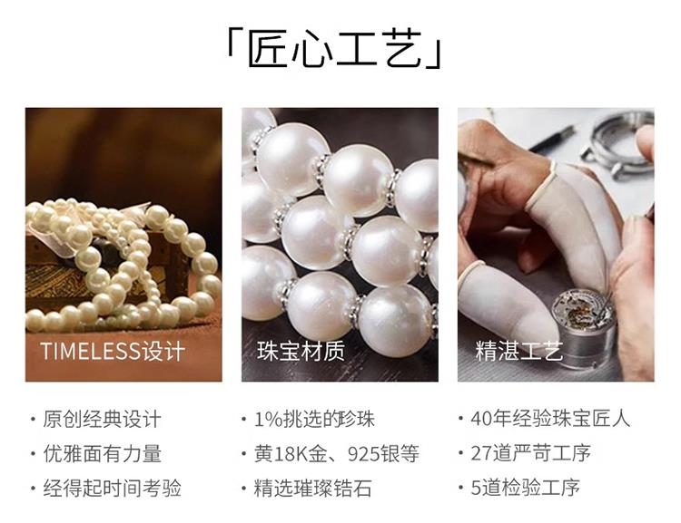 珍珠间的错落排列更增加了层次的美感。戴在身上,时刻体现优雅精致,珍珠的优雅配简单服饰,举手投足优雅体现。