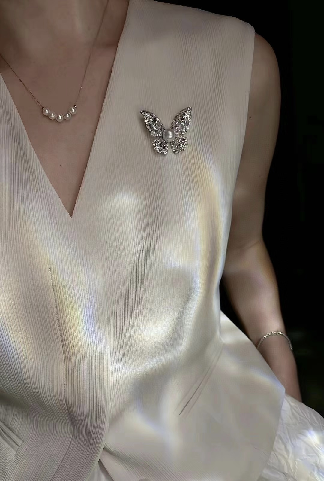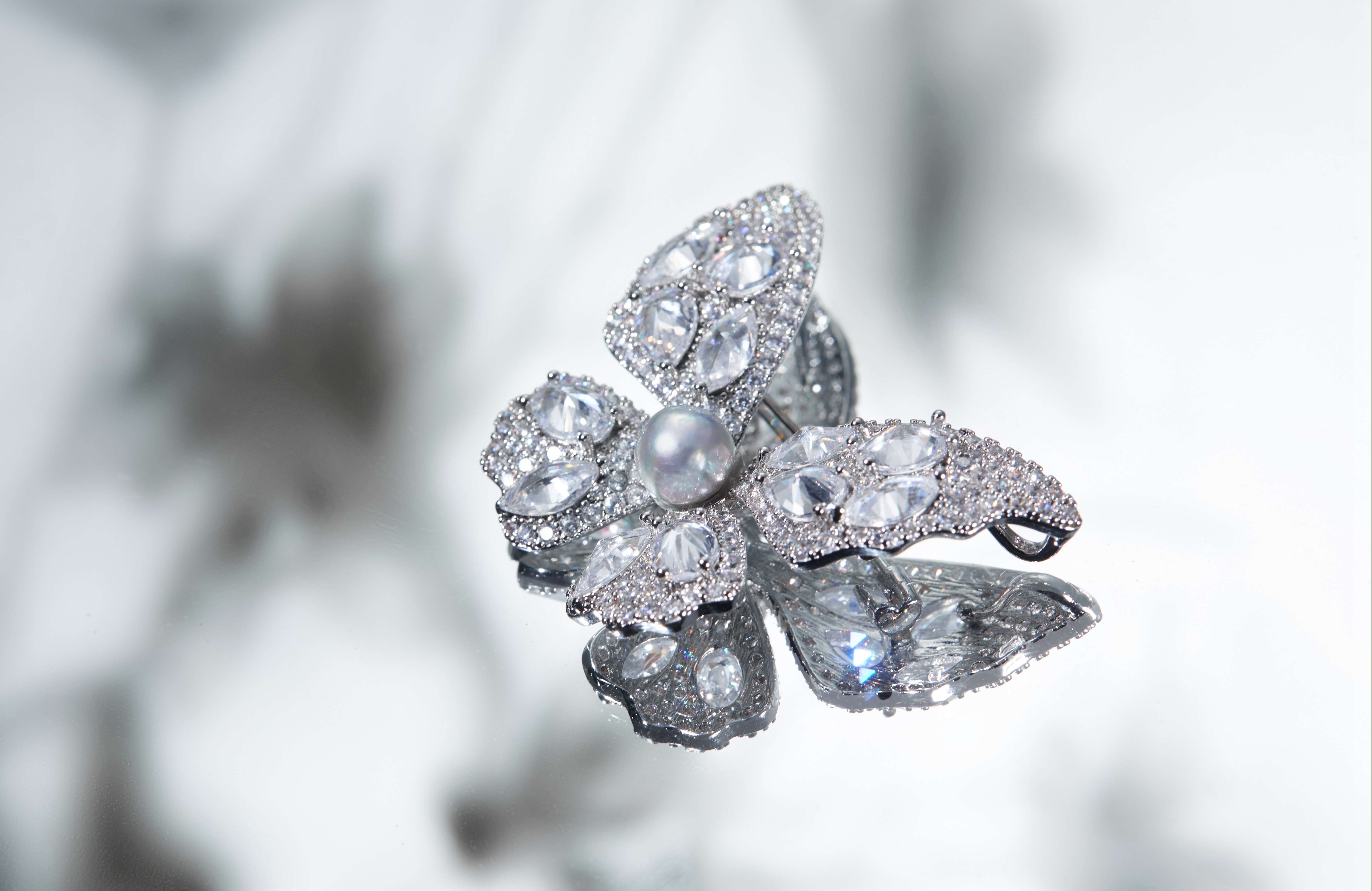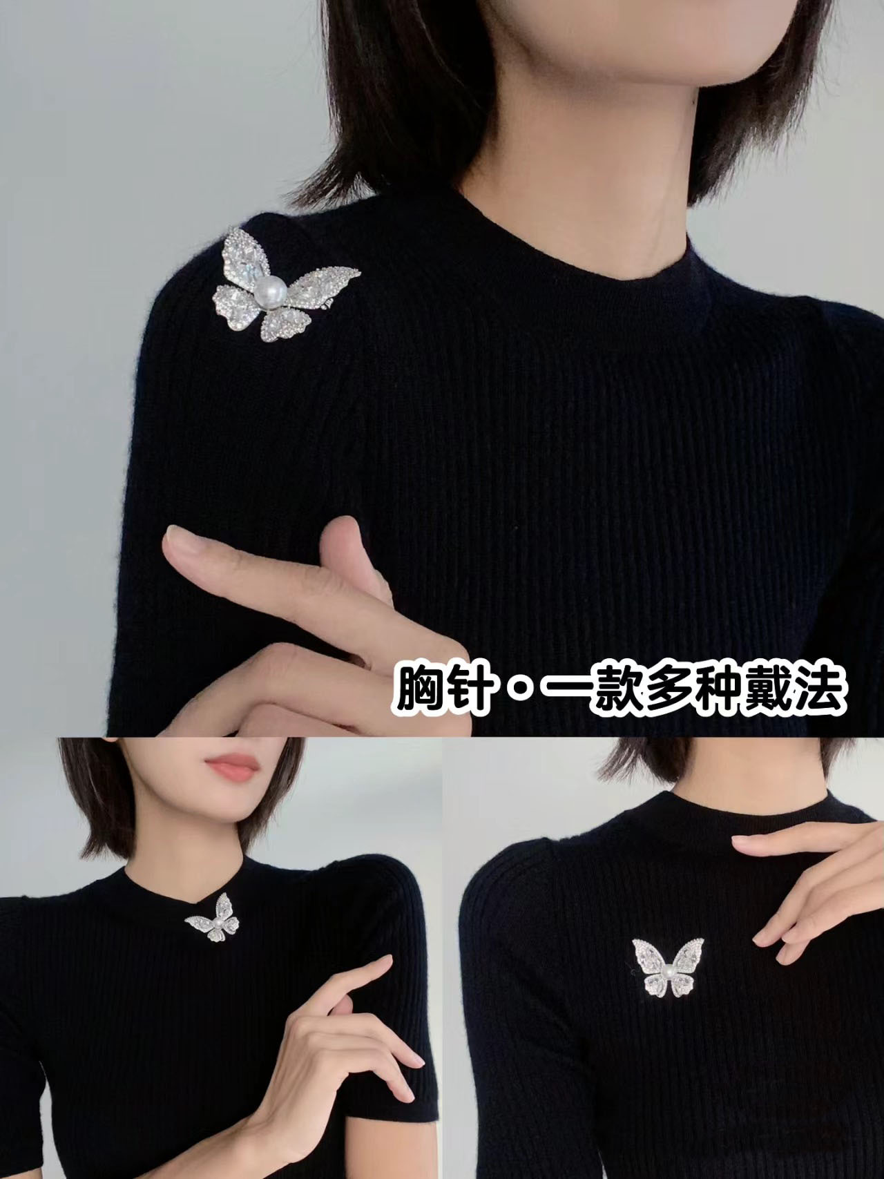 海水AKOYA蝴蝶珍珠胸花发饰真多麻色
