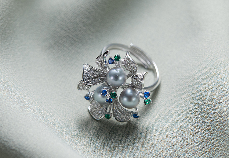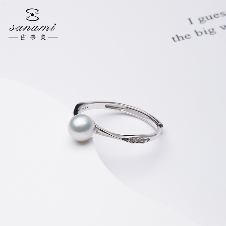 925银可调节白色海水珍珠戒指