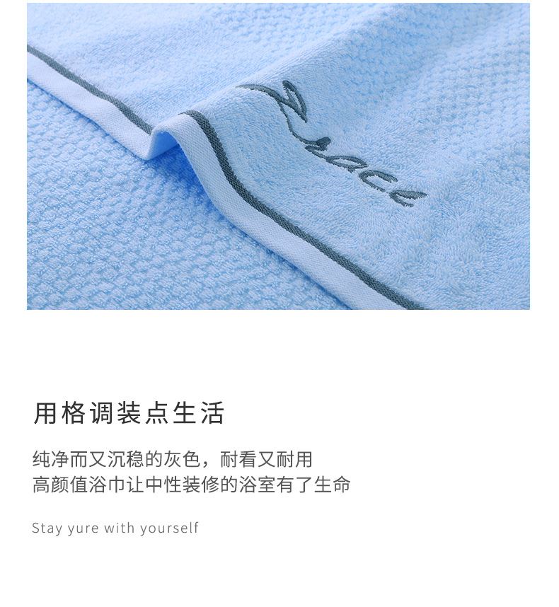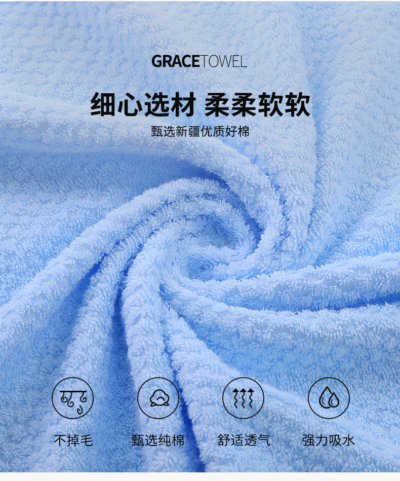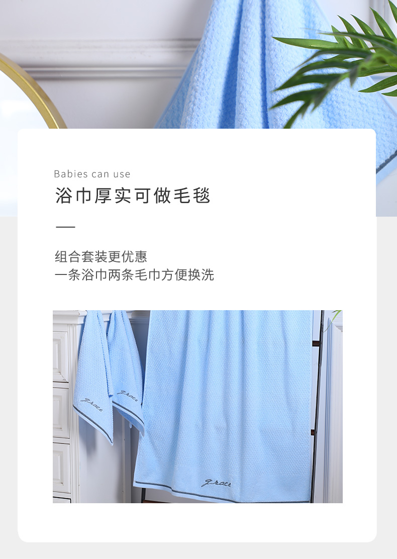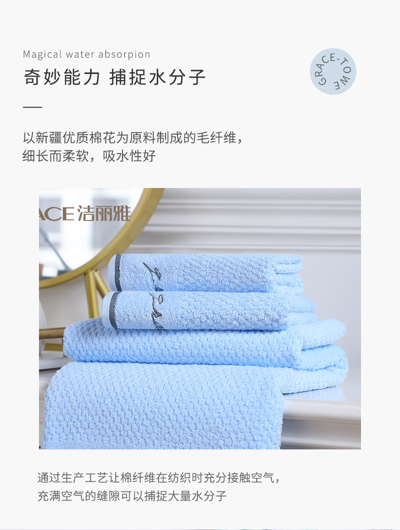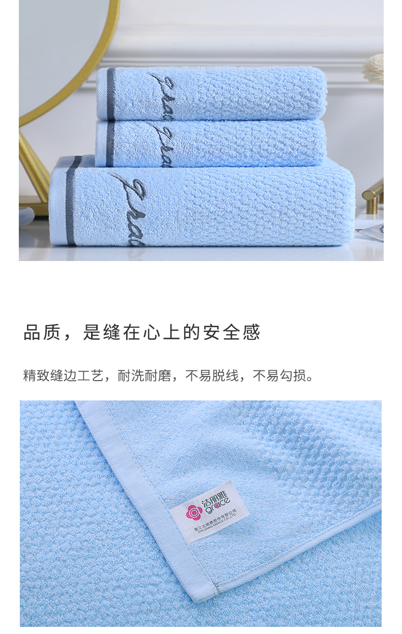 洁丽雅(Grace)浴巾家用纯棉 柔软吸水全棉大号毛巾浴巾 1*浴巾+2*毛巾组合装 (蓝色)