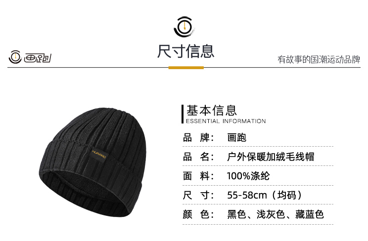 【顺丰发货】HUAPAO画跑冬季户外保暖加绒休闲百搭毛线帽