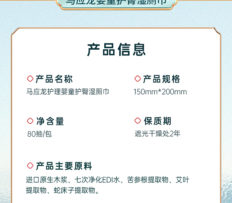 【产品名称】马应龙护理婴童护臀湿厕巾