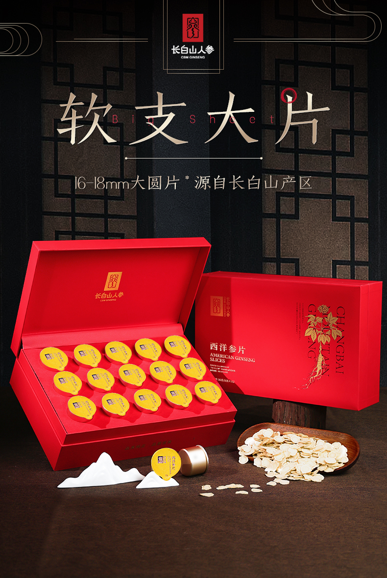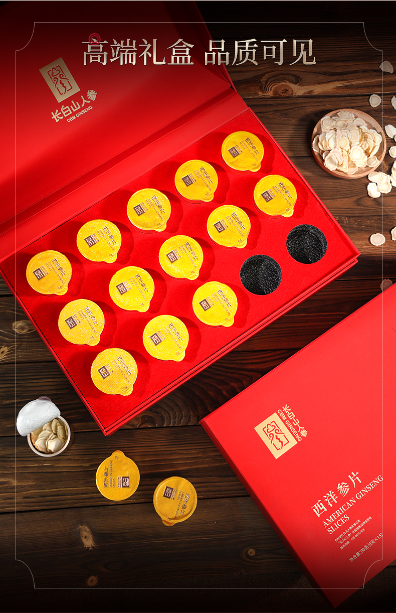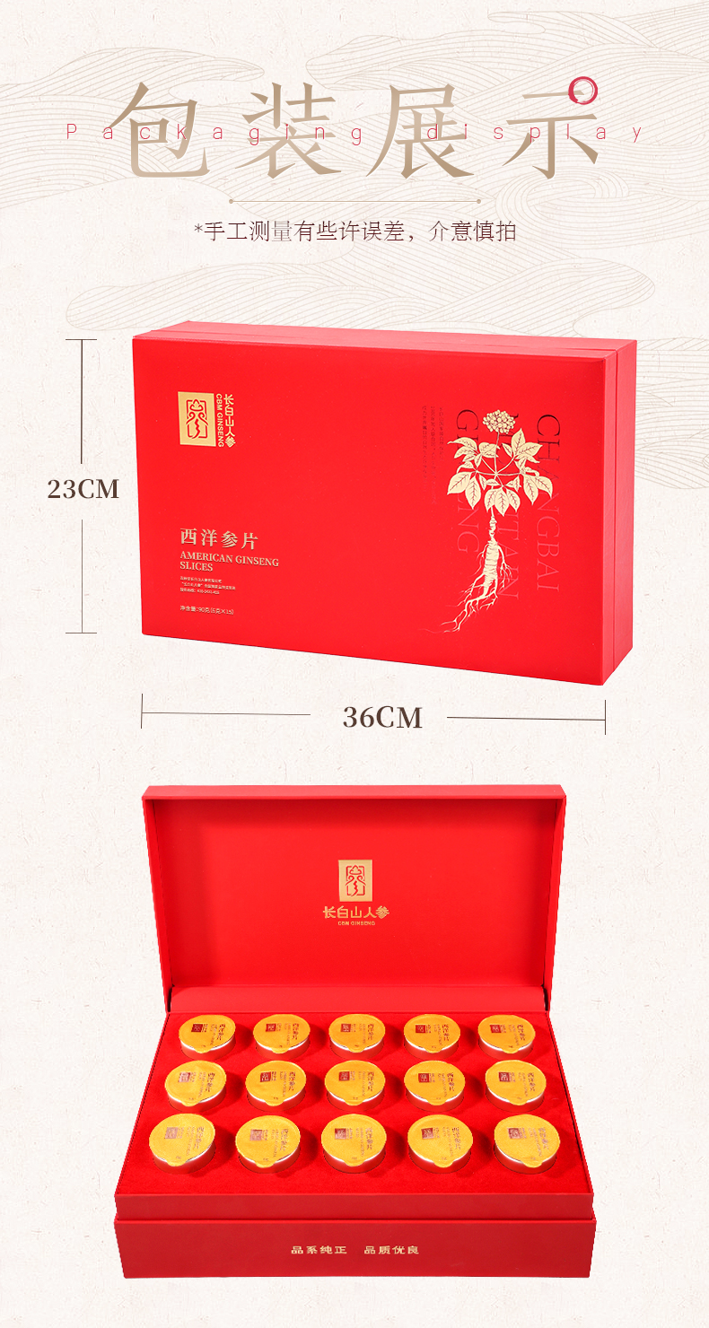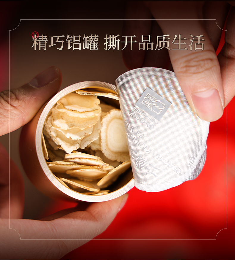 热售【西洋参片小罐茶】长白山人参小罐参茶西洋参片礼盒非花旗参16~18mm软支大片礼品