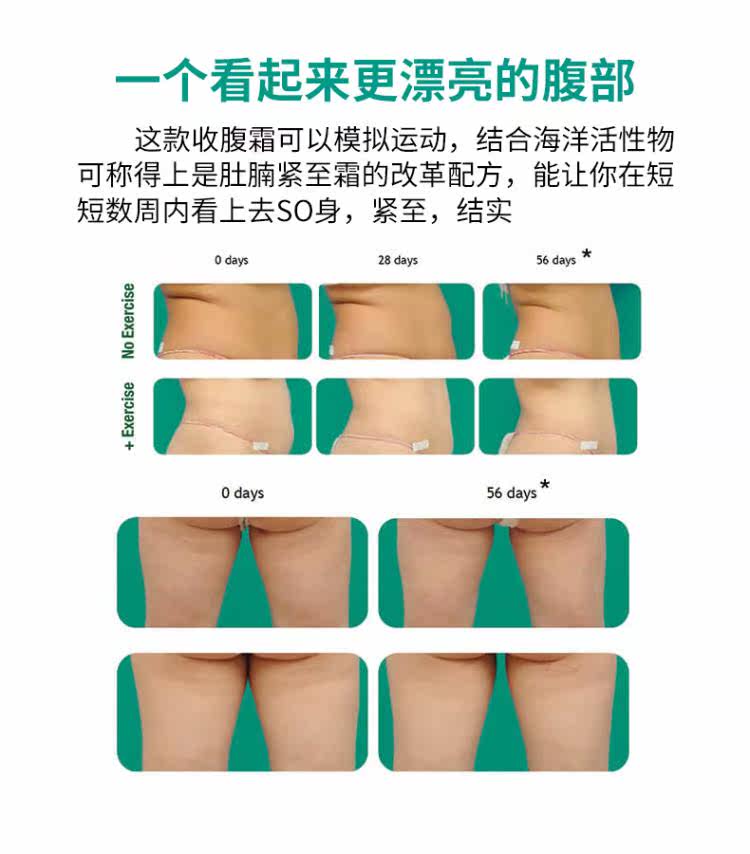 freezeframe独特的微整形减肥霜,无需运动锻炼、无需手术抽脂,即可让你达到与运动一样的快速消脂效果!大部分使用者能在使用产品的56天内腰围减掉10.4厘米,且体重也会有一定程度减轻