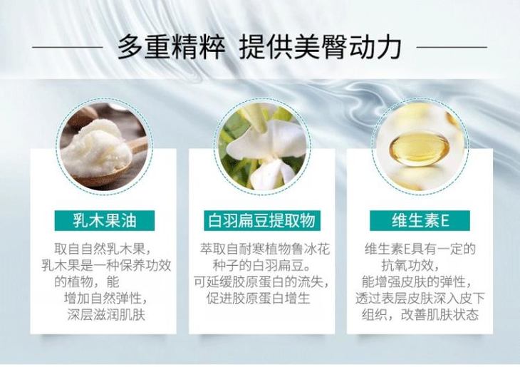 使松弛下垂的臀部提升上翘,并且肌肤嫩白滋润,展现完全女性魅力。