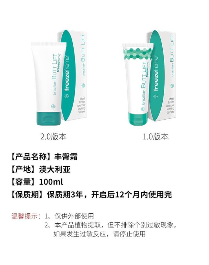 澳洲Freeze Frame提臀丰臀霜,让你的臀部更圆更翘更紧实,有效提升你的身体曲线,提拉紧致臀部肌肤,紧实松弛下垂提升上翘,嫩白滋润,改善臀部松弛下垂扁平等问题,让你拥有美丽圆润翘臀提升女人韵味提高气质,身材更加性感迷人!