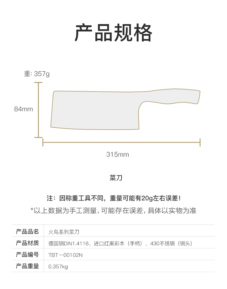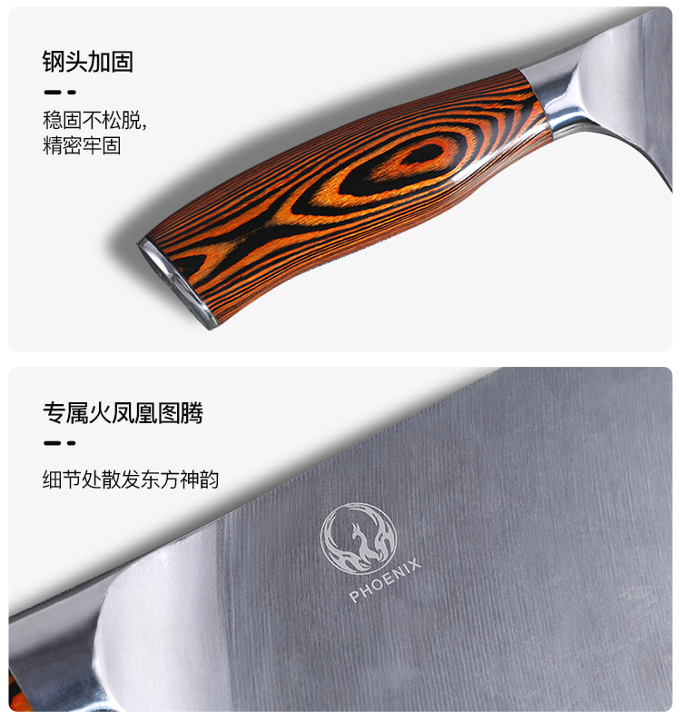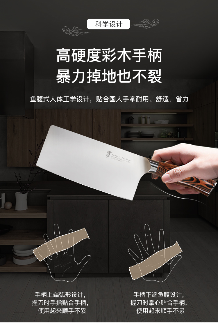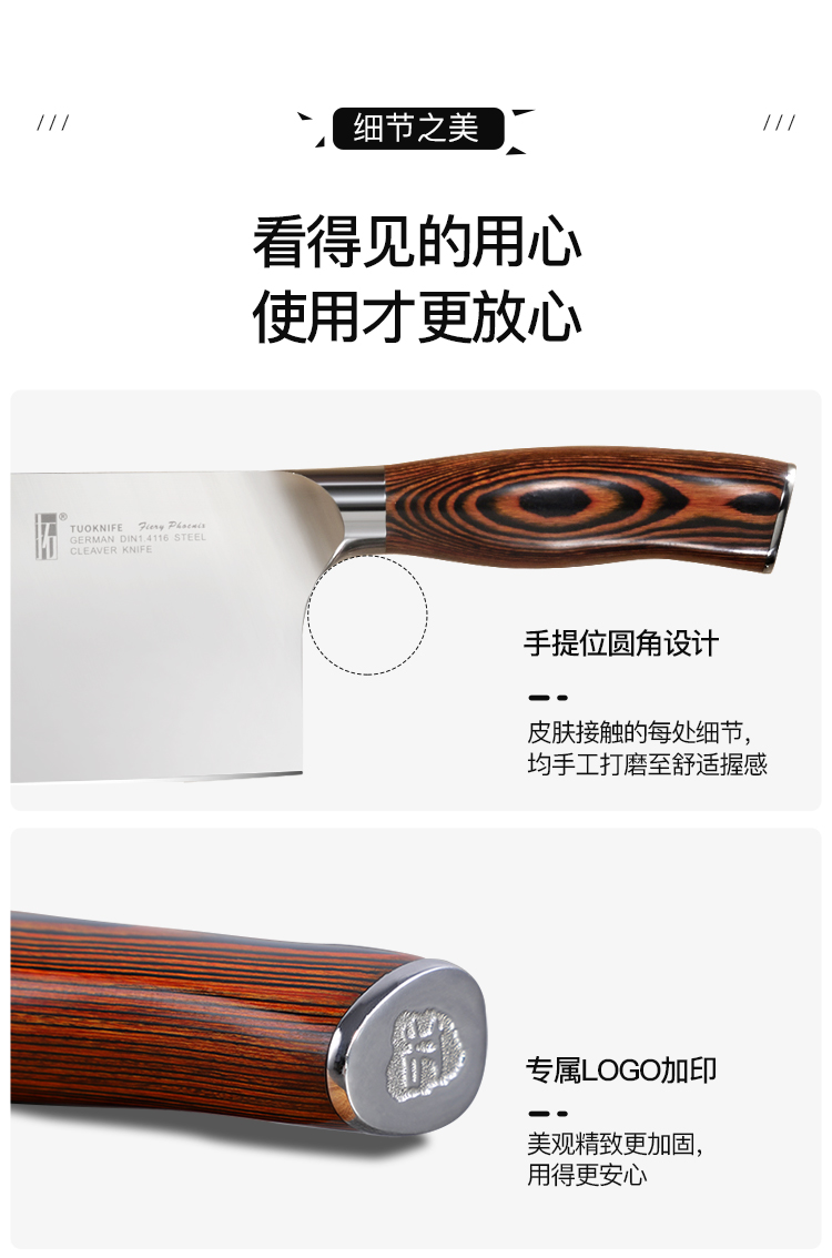 拓 火鸟系列中式菜刀锋利德国进口钢手柄舒服久切不累手