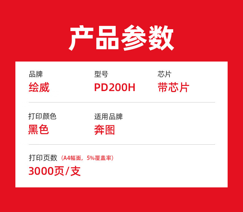绘威 PD-200H大容量易加粉硒鼓 适用奔图PANTUM P1050 2050 P2650 P2650N M5000 M6000 M6005打印机墨粉盒