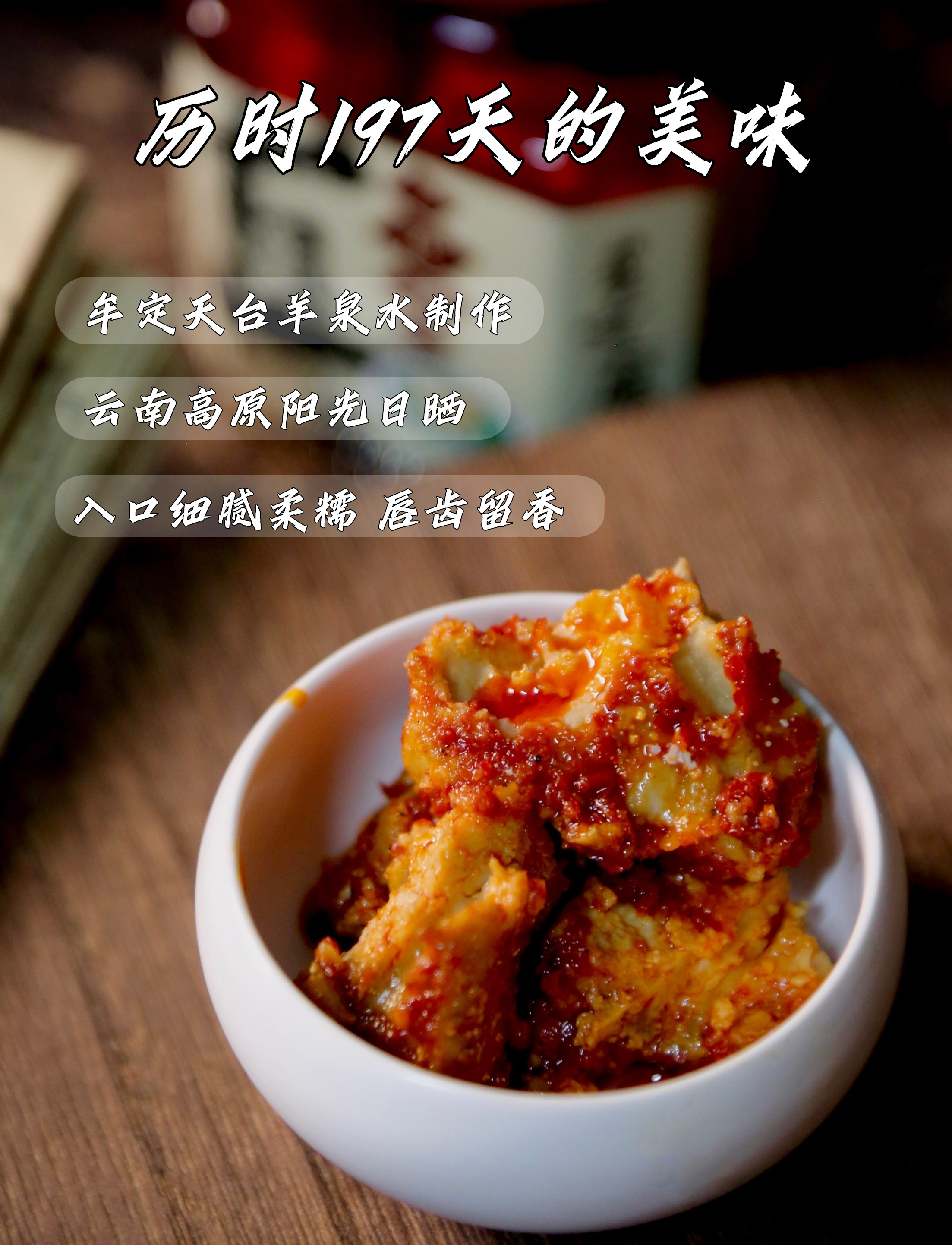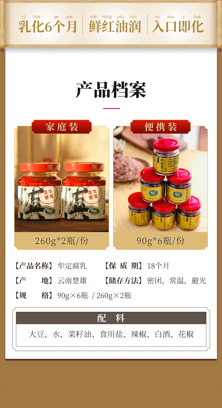 但是为了达到口感,我们的腐乳经历了6个月的乳化时间,只有入口即化的口感,才配的上"乳"这个字。