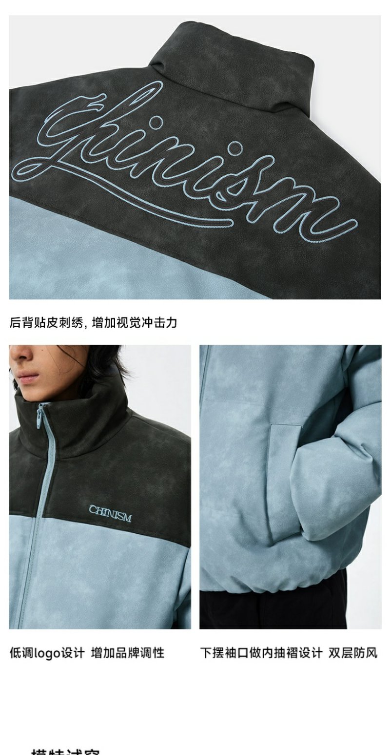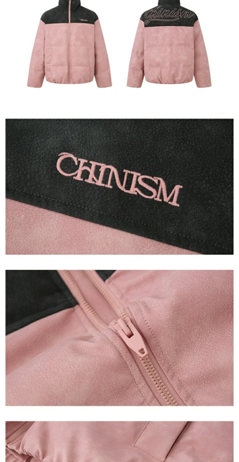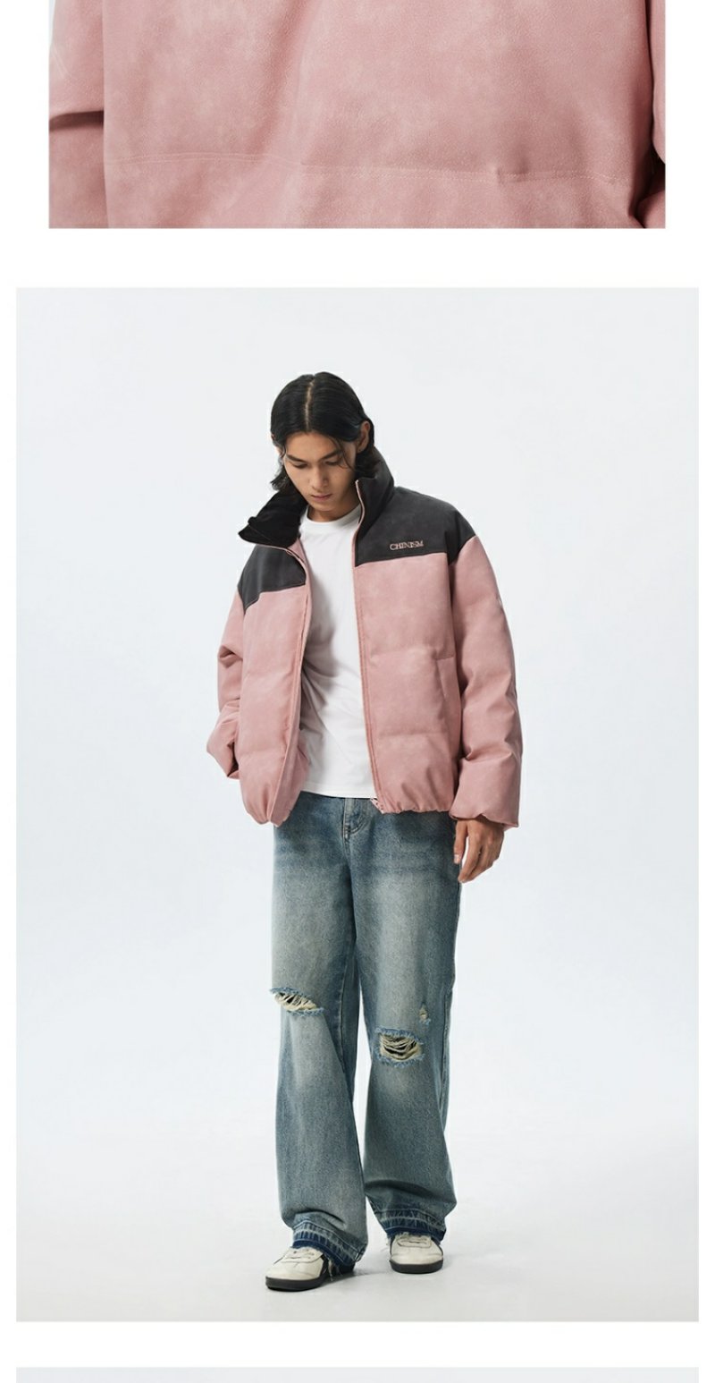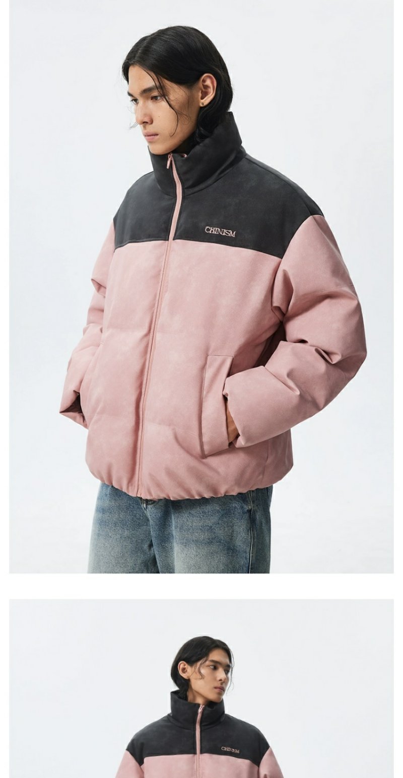CHINISM赤尘 灰粉色拼接立领岩纹棉服男冬季加厚棉衣外套美式棉袄