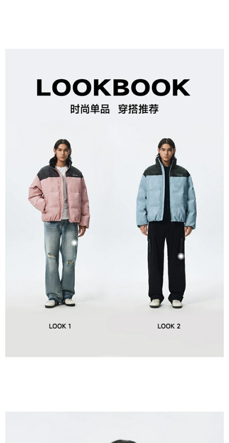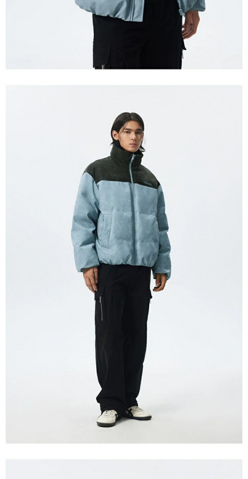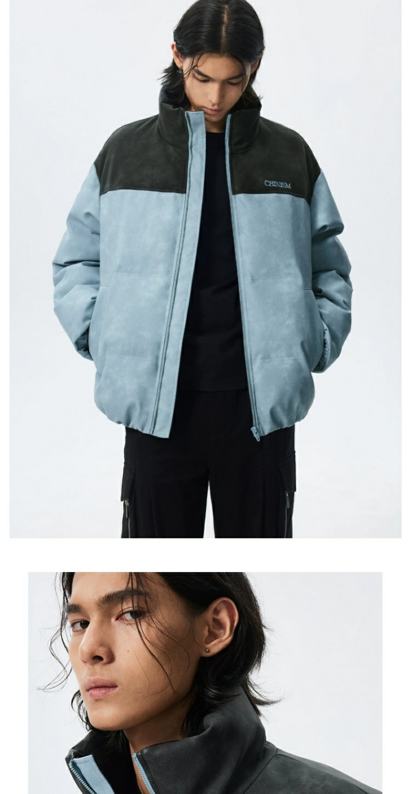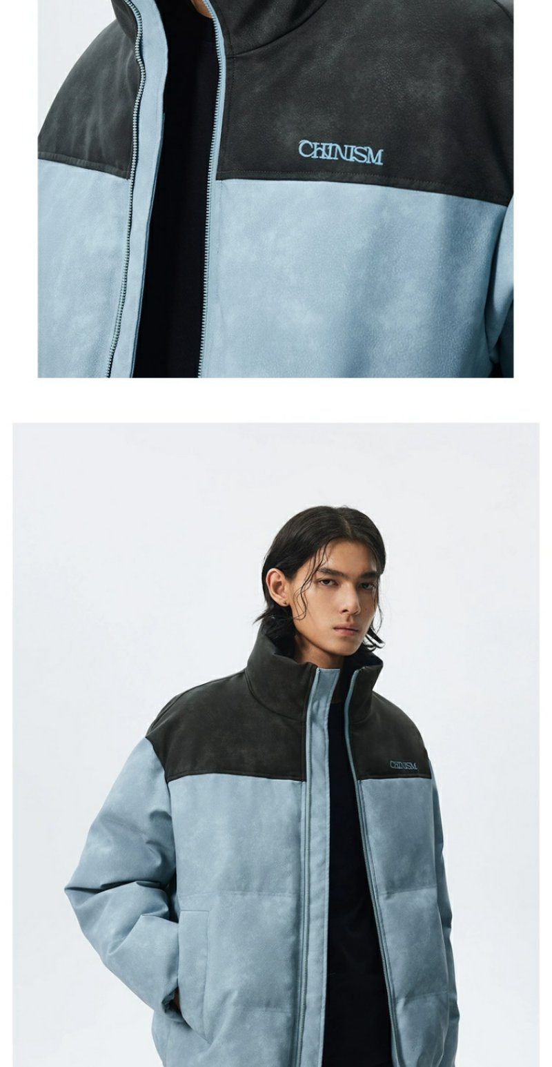 CHINISM赤尘 灰粉色拼接立领岩纹棉服男冬季加厚棉衣外套美式棉袄